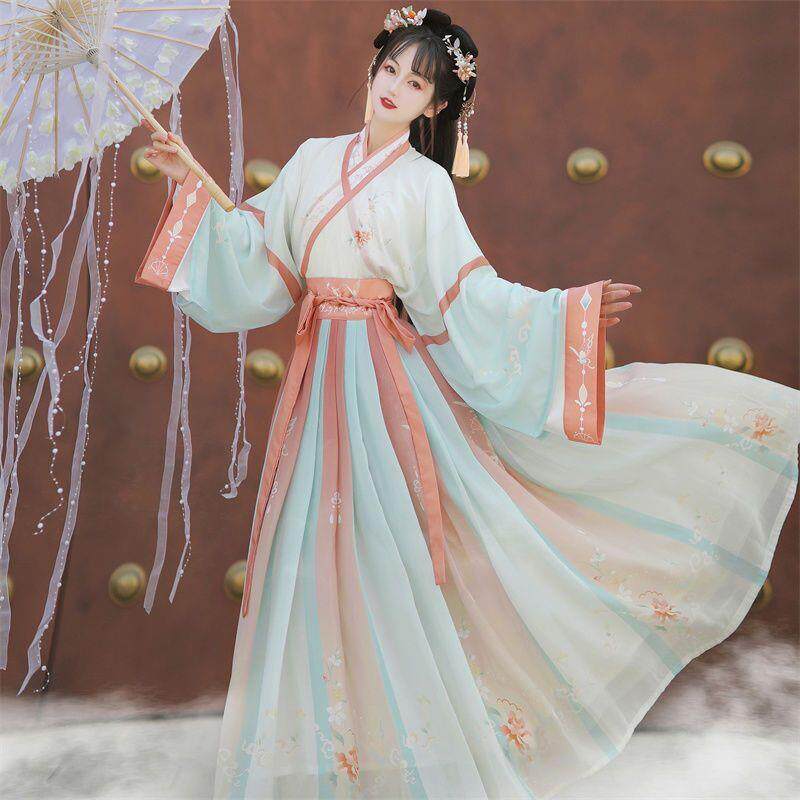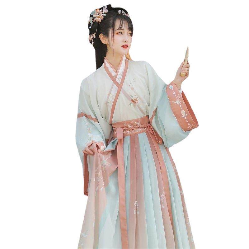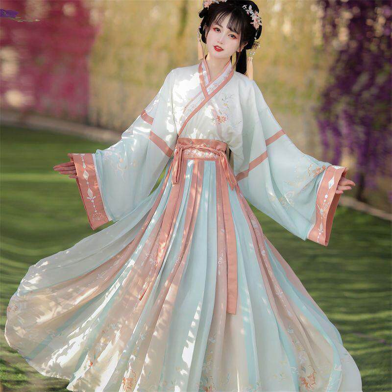 淘宝2025新款魏晋制印花汉服套装女学生超仙飘逸中国风日常穿演出服装
