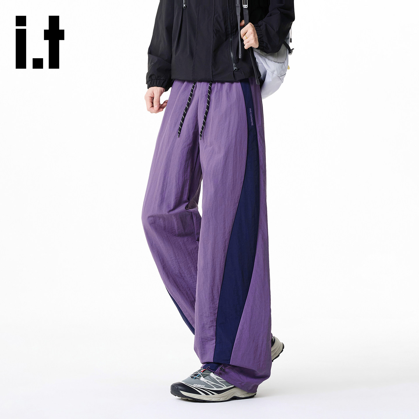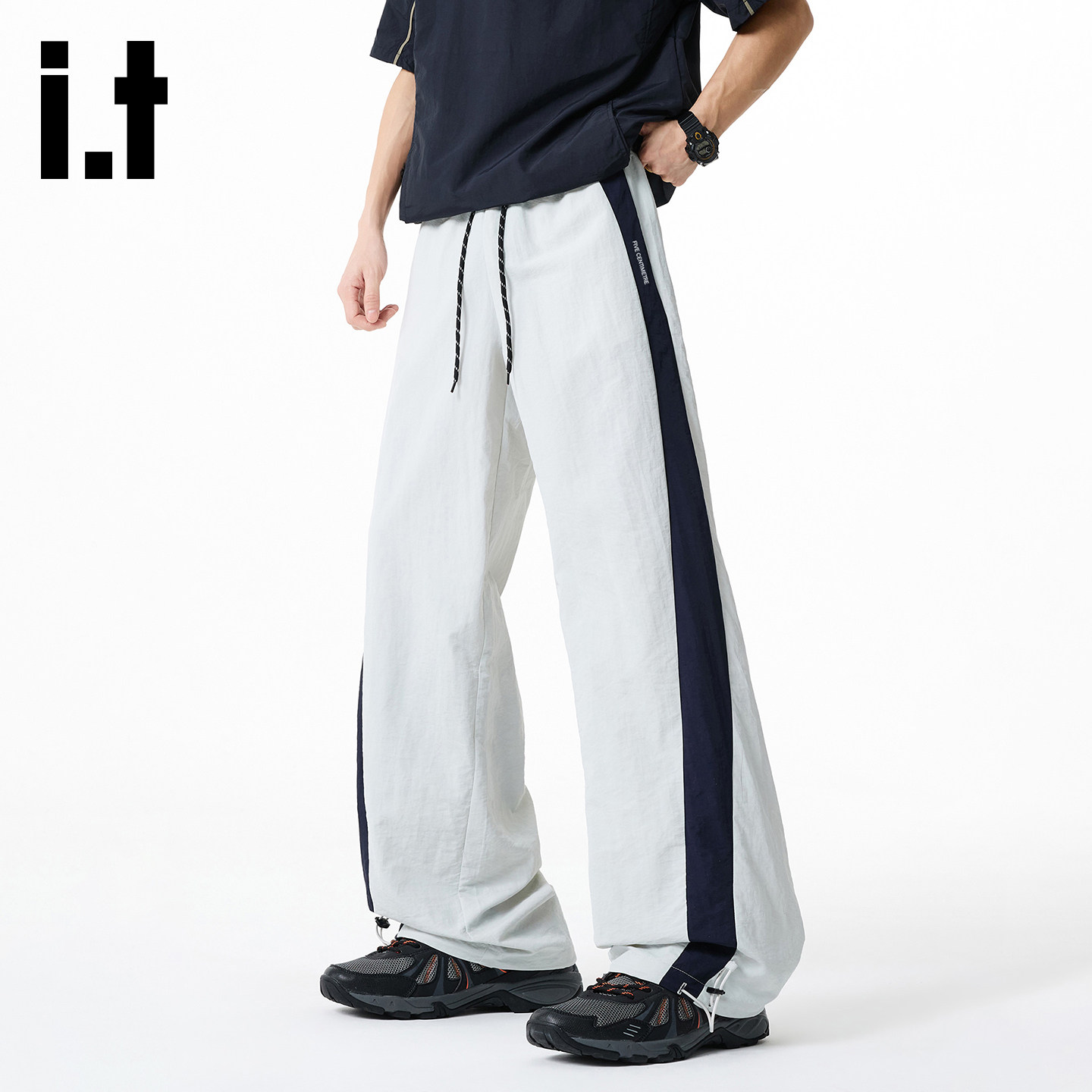 it FIVE CM拼色运动裤男2026新款宽松速干伞兵裤侧边条纹休闲长裤