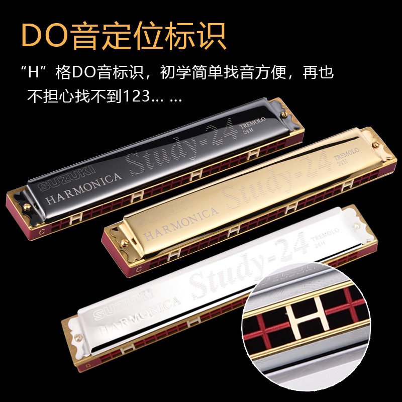 原装日本铃木口琴24孔复音C调初学男学生成人专业演奏级高端乐器