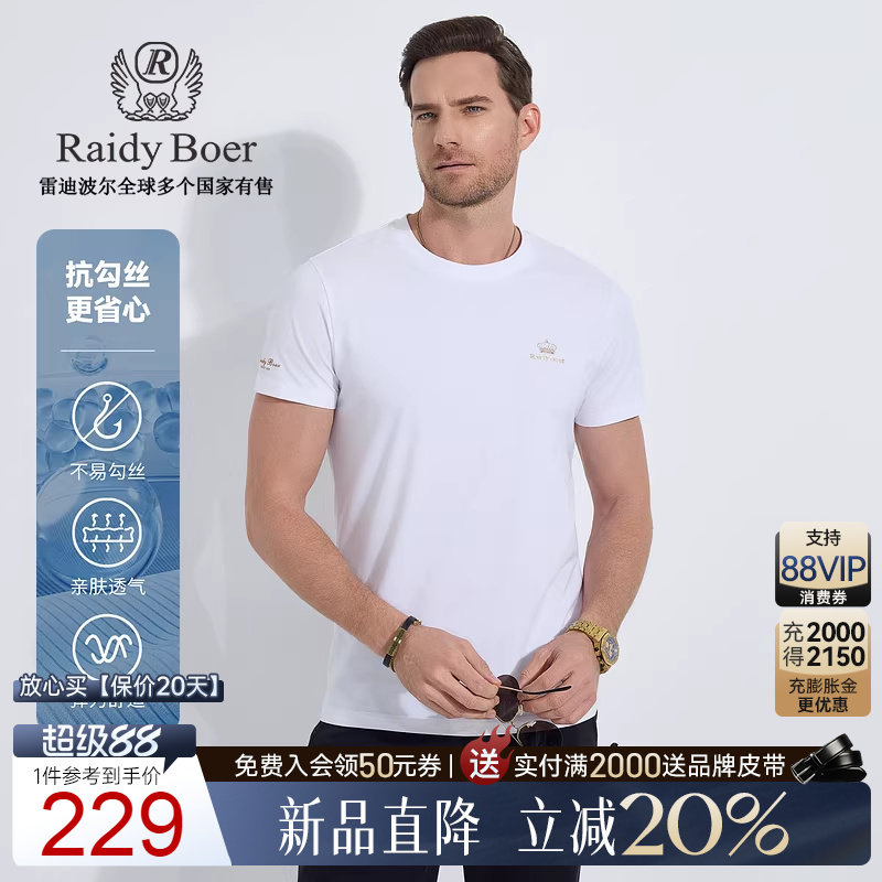 --------------------- 【抗勾丝】Raidy Boer/雷迪波尔男装2025年夏休闲圆领短袖T恤7146 --------------------- --------------------- 【原价】999元 【券后价】218元