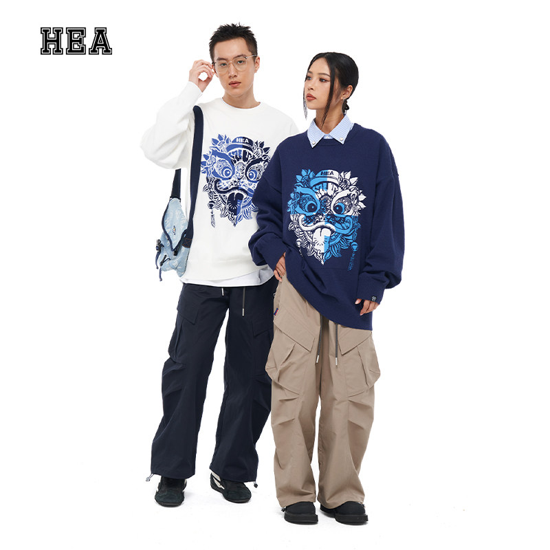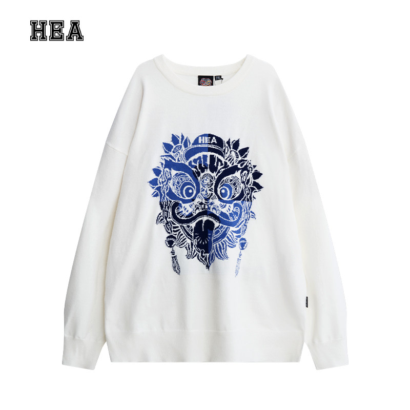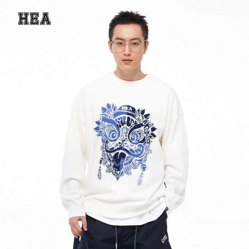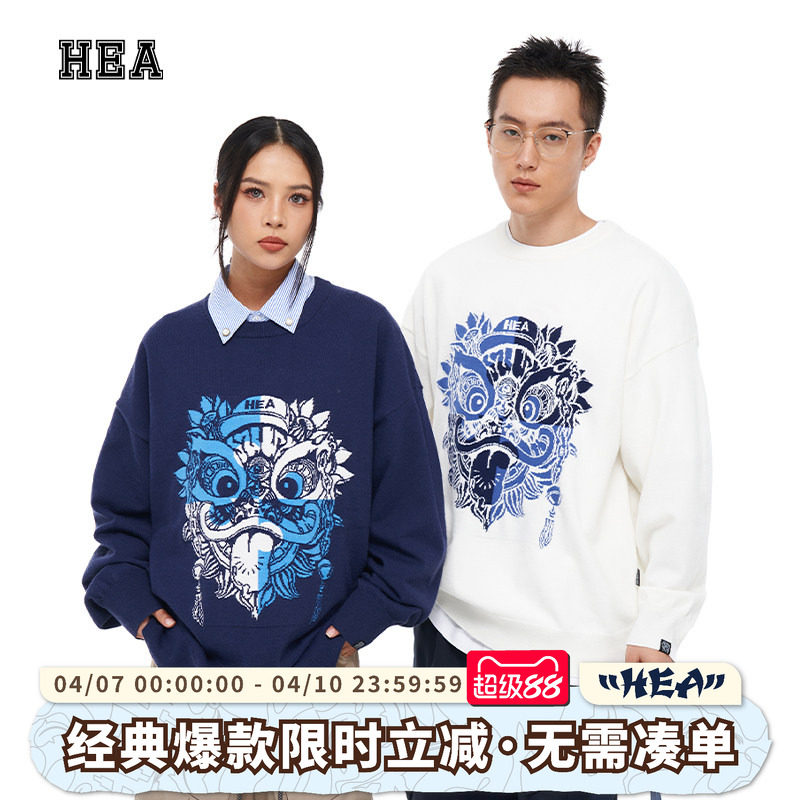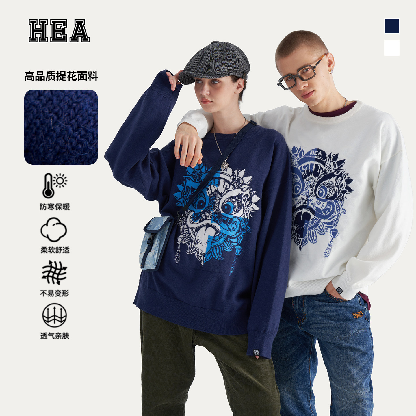 HEA毛衣男女秋冬新款经典拼图大狮头保暖复古套头针织毛衣情侣装