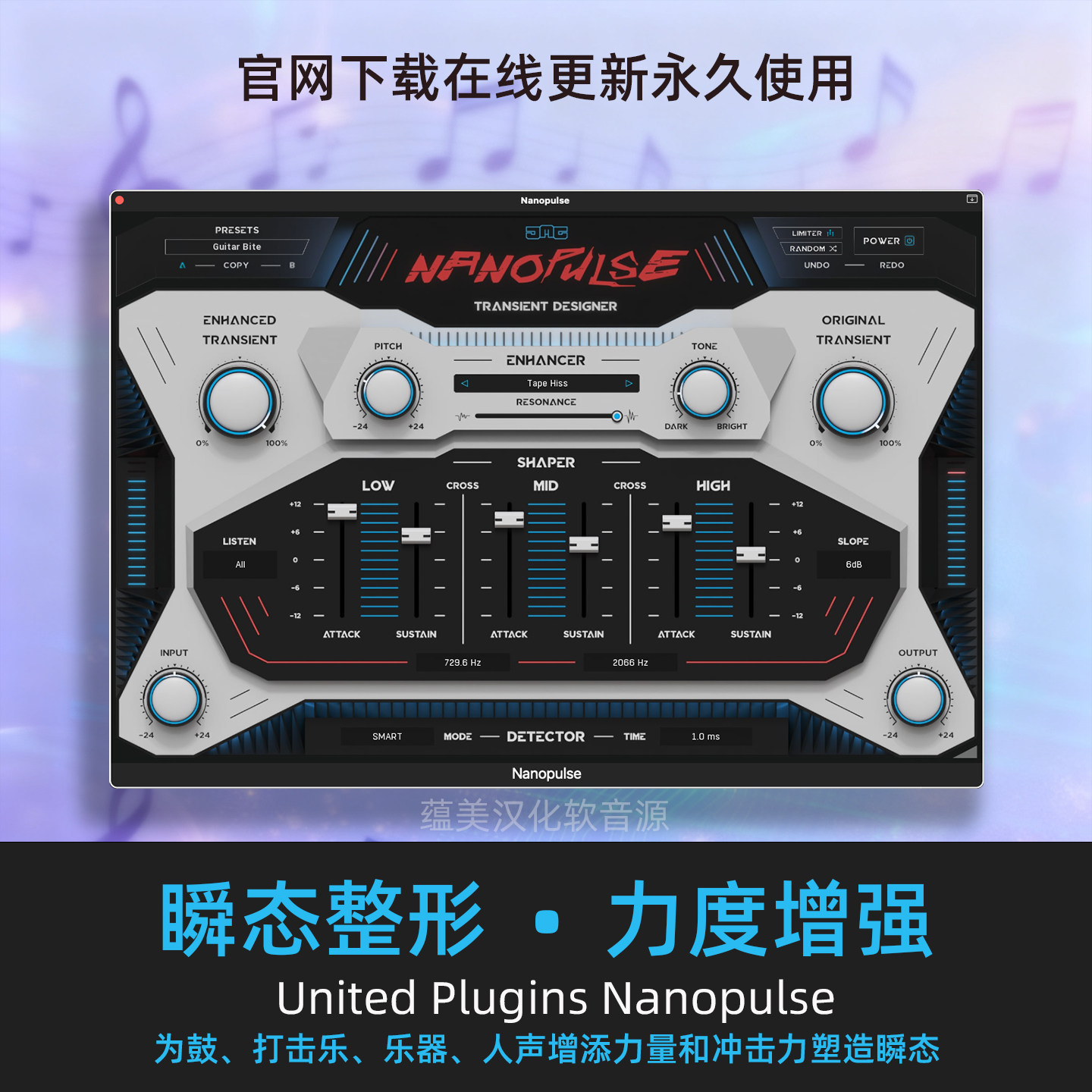 --------------------- 瞬态整形效果器United Plugins Nanopulse母带混音插件力度增强 【原售价】199元 【现售价】139.9元 【推荐理由】