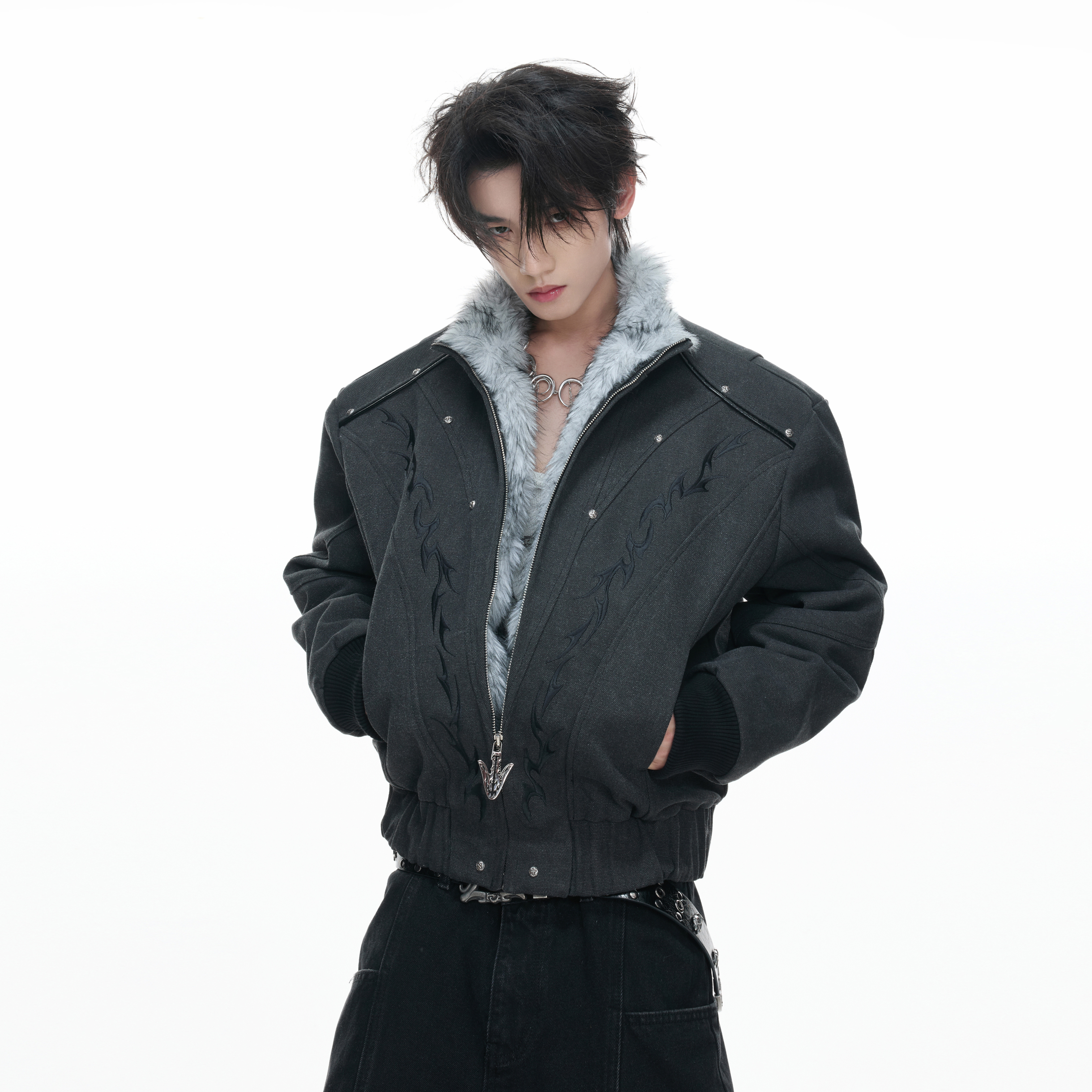 ArguE CulturE赤焰二代*重磅水洗帆布加绒加厚座山雕短宽夹克外套