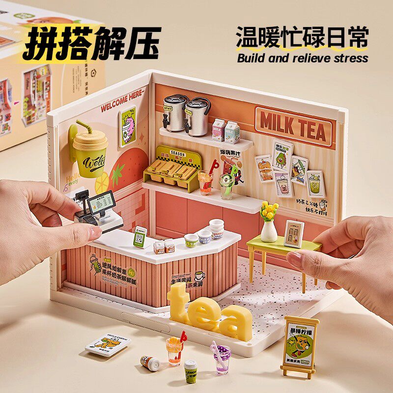手工diy小屋积木超级迷你世界微缩小房子奶茶店场景拼装模型玩具