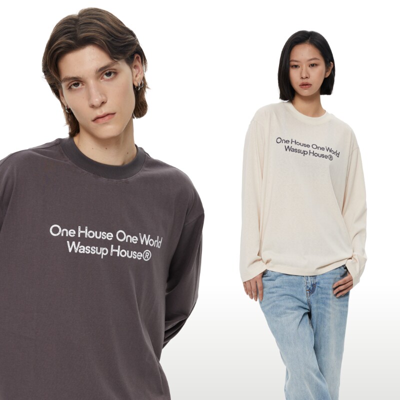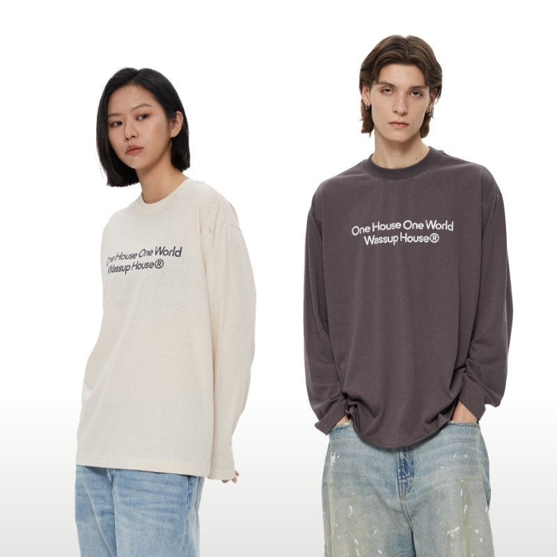 WassupHouse董洁同款做旧斑驳印花云朵纱长袖T恤基础休闲上衣男女