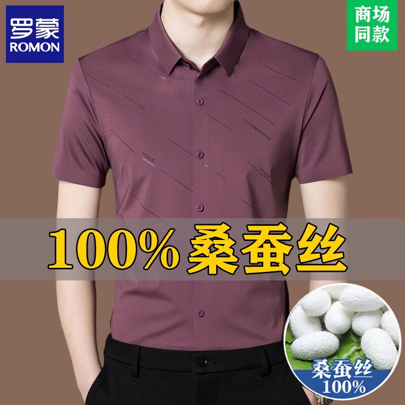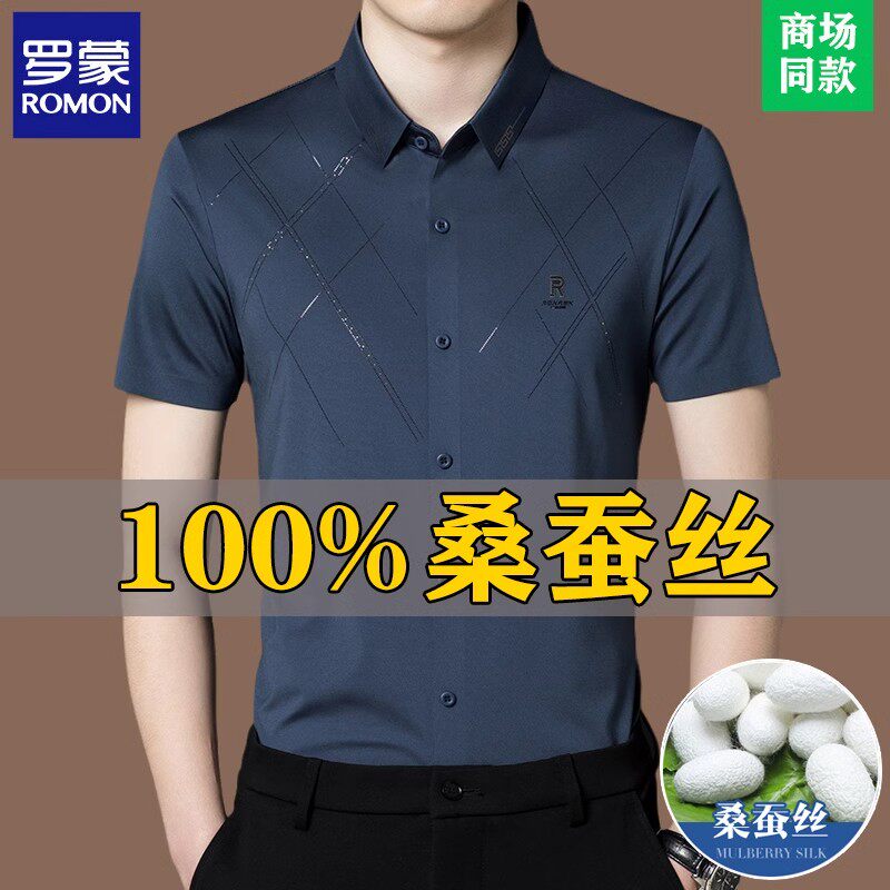 --------------------- 罗蒙高级感桑蚕丝短袖衬衫男士夏季新款中年商务印花宽松免烫衬衣 【原售价】698元 【现售价】122元 【推荐理由】