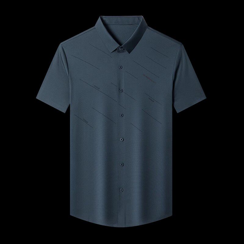 罗蒙高级感桑蚕丝短袖衬衫男士夏季新款中年商务印花宽松免烫衬衣