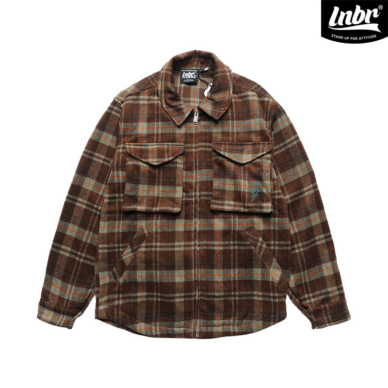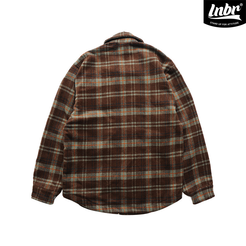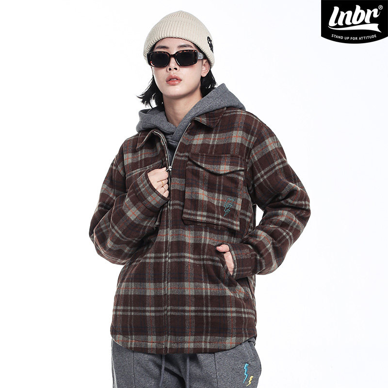 LNBR国潮24冬新品长袖格纹衬衫外套男宽松复古保暖厚夹克大码