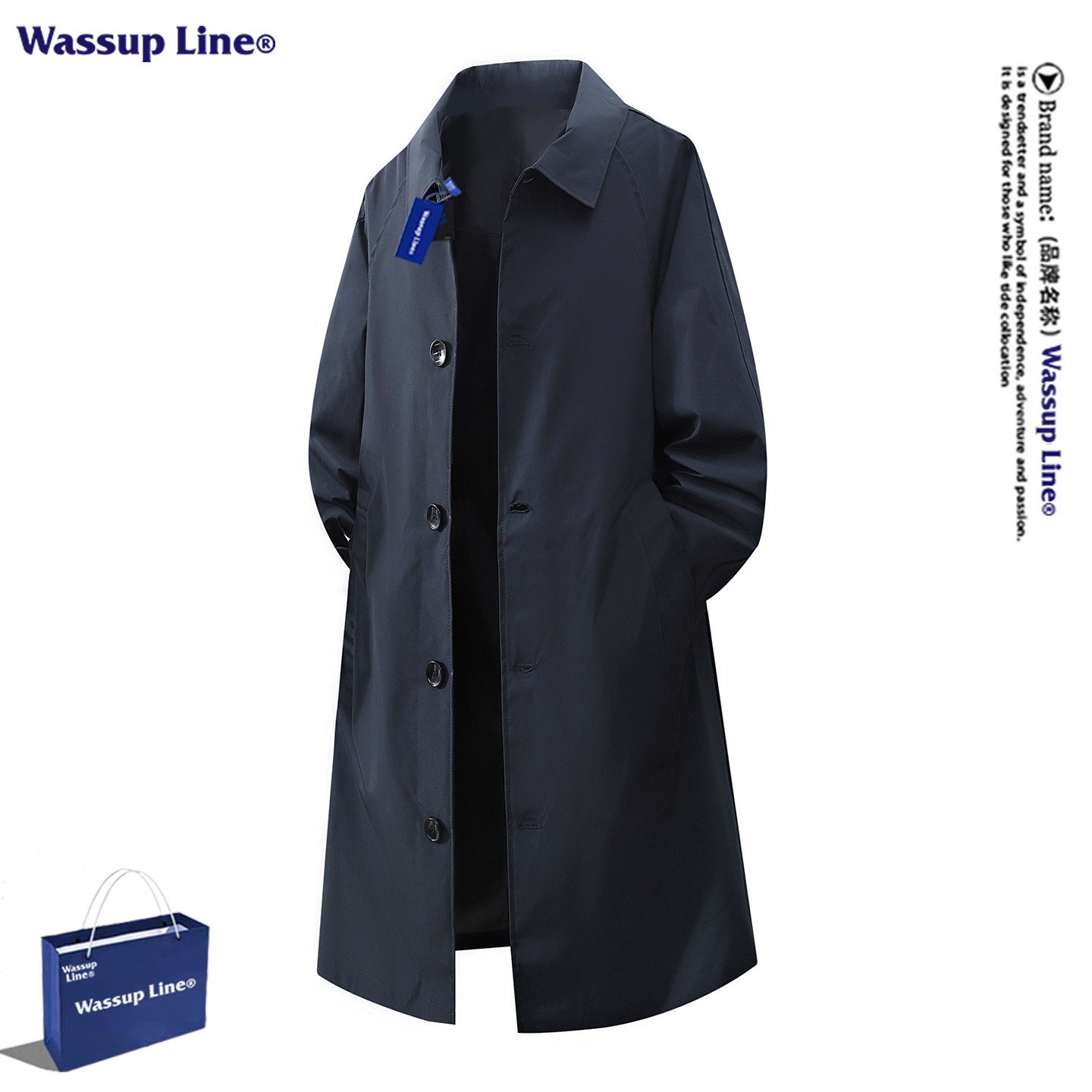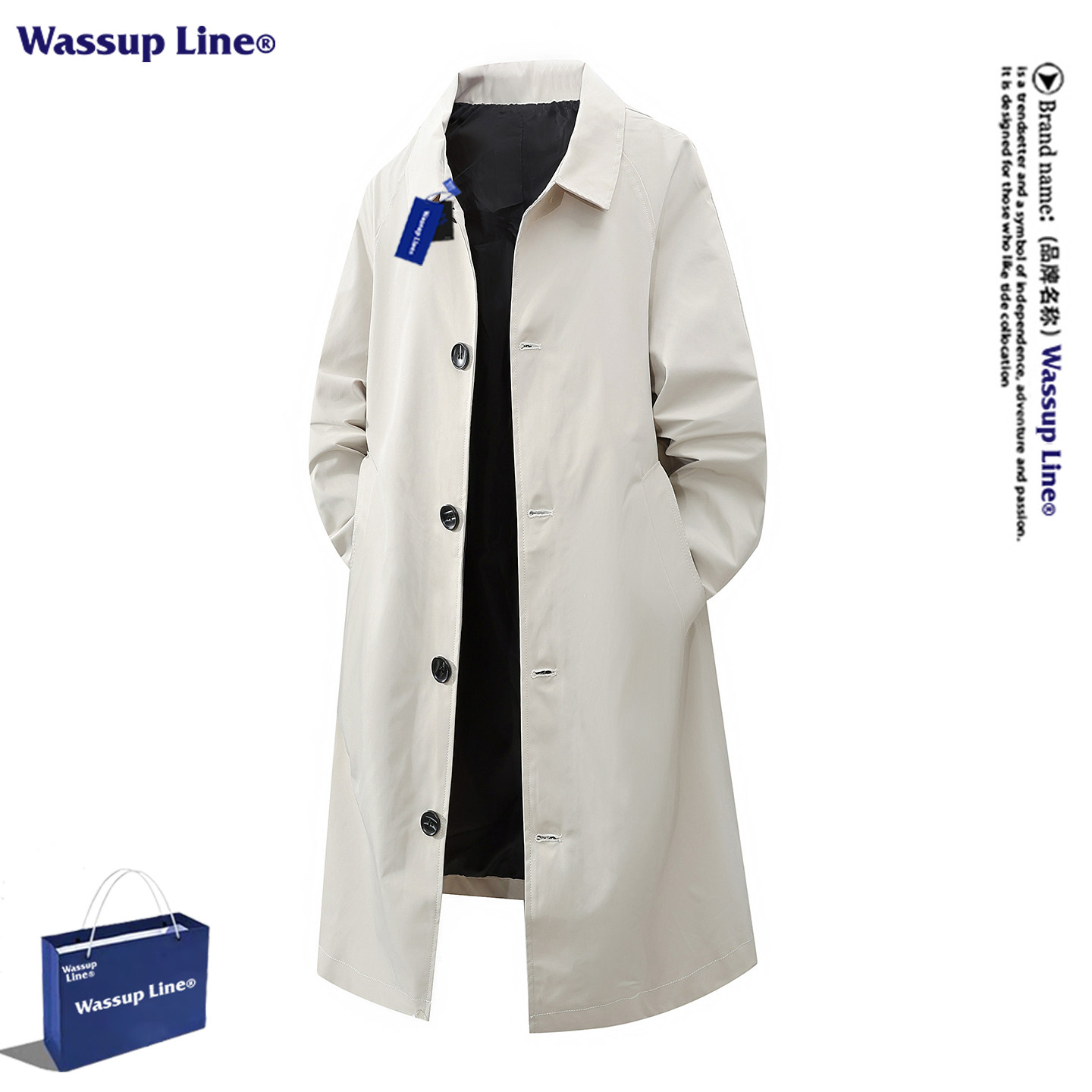 WASSUP Line潮牌美式中长款风衣男款春秋季宽松百搭复古大衣外套