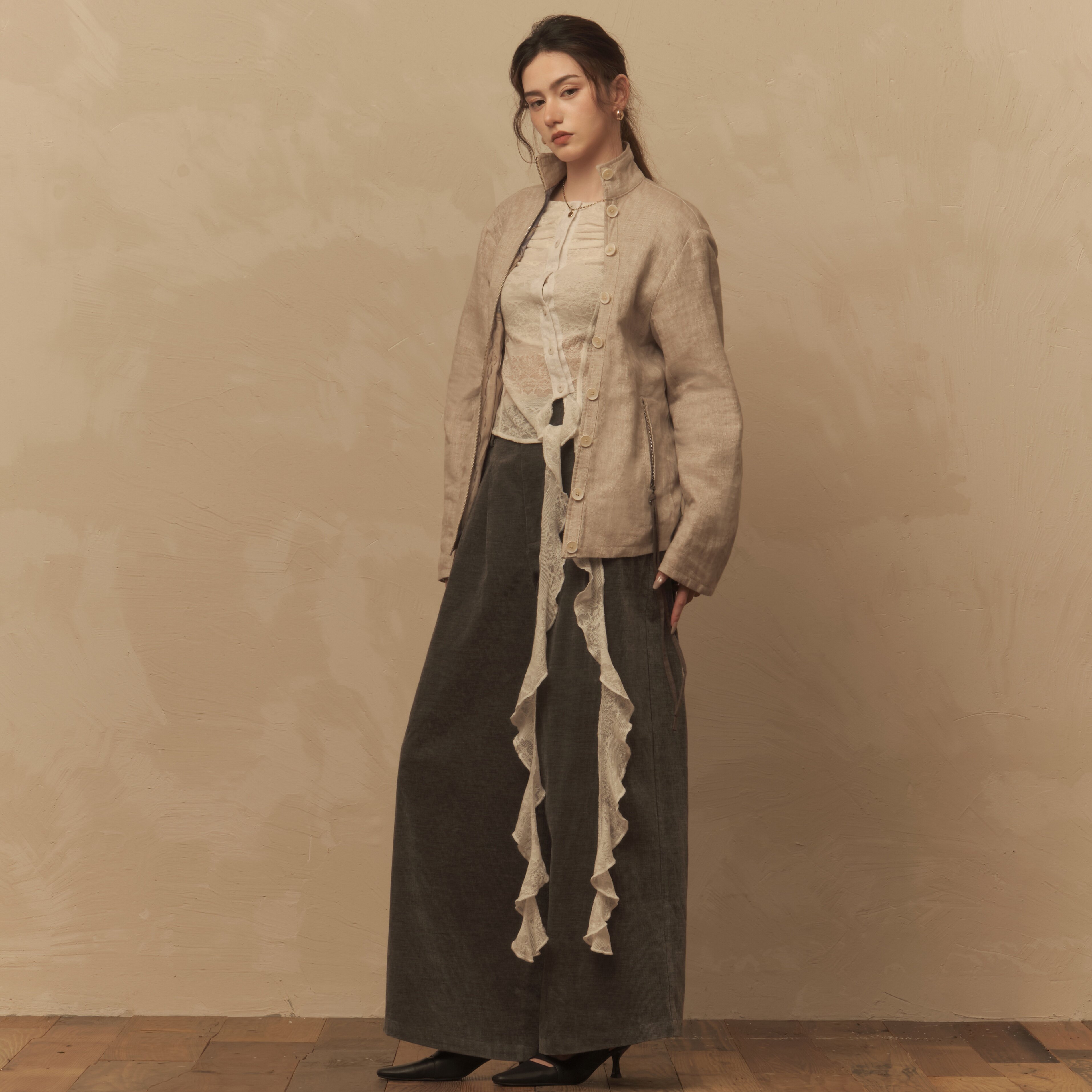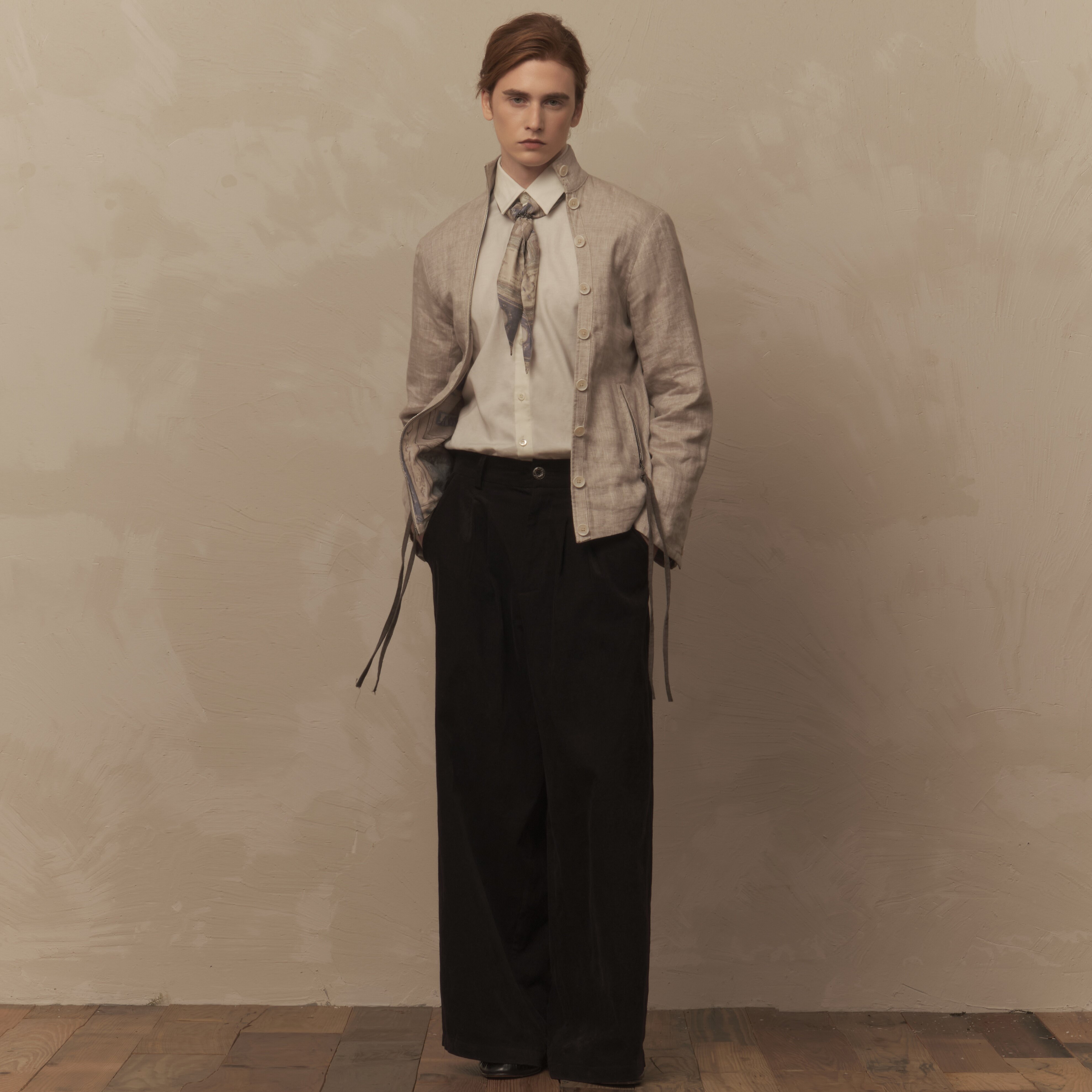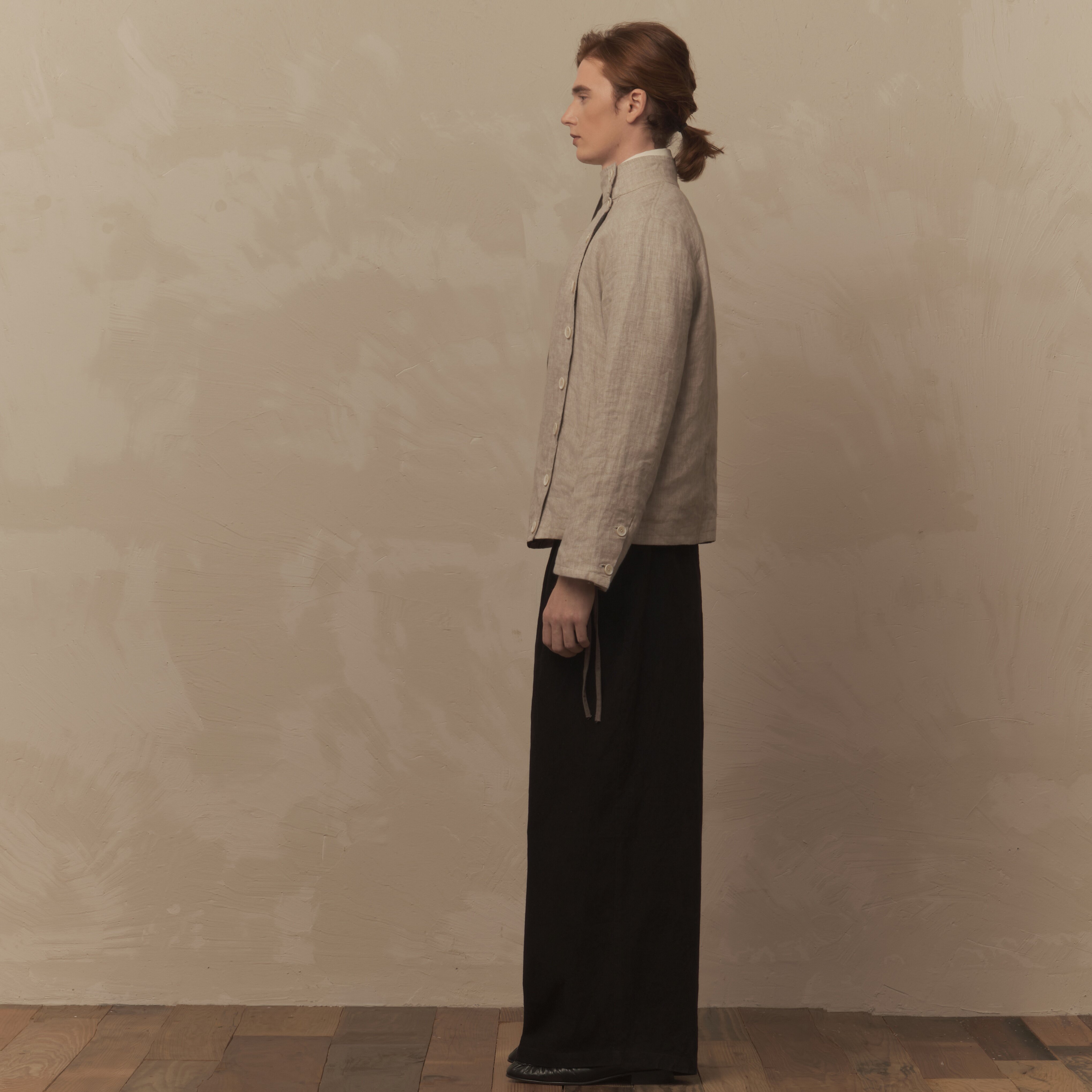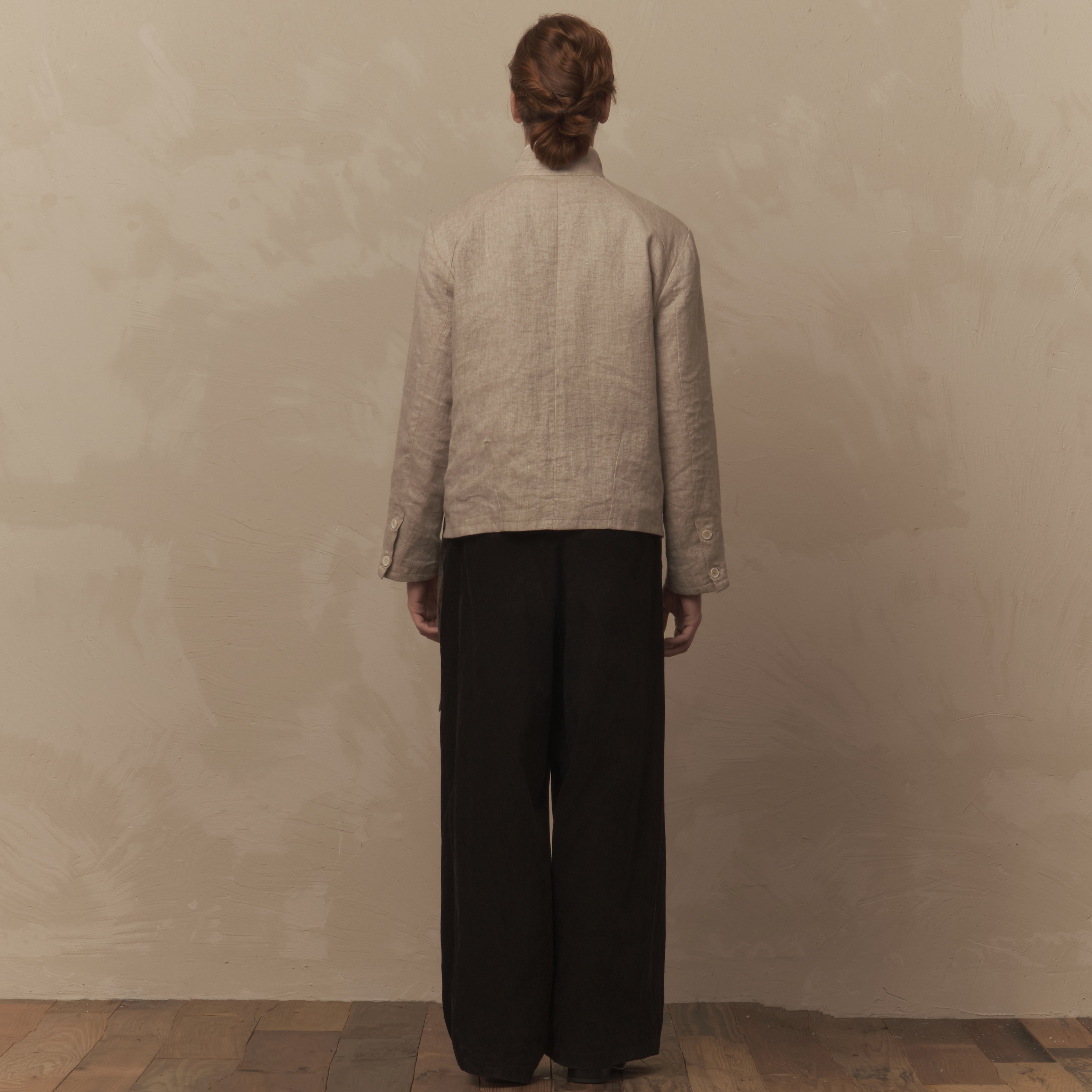 TAM TUAS【马歇尔】法国进口重磅人字纹纯亚麻多穿立领击剑夹克