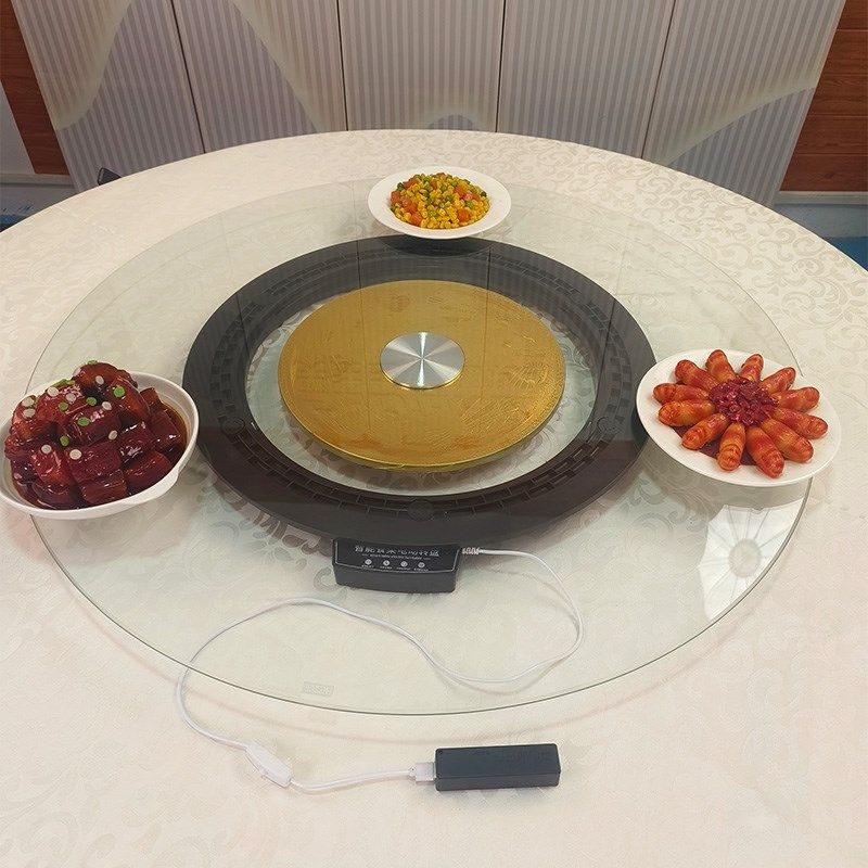 大圆台餐桌电动转盘器餐桌底座家用酒店自动转盘岩板转盘钢化玻璃