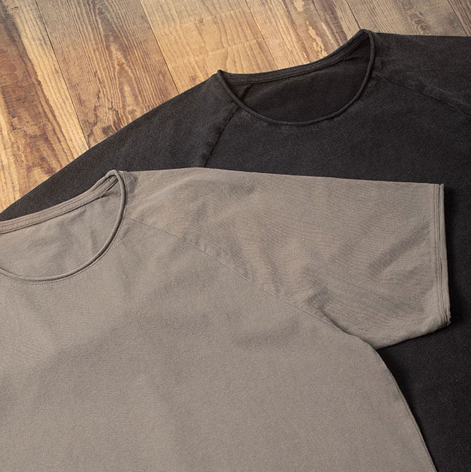 Double Seam 洗水做旧复古宽松短袖T恤圆领插肩袖卷边抄色纯棉