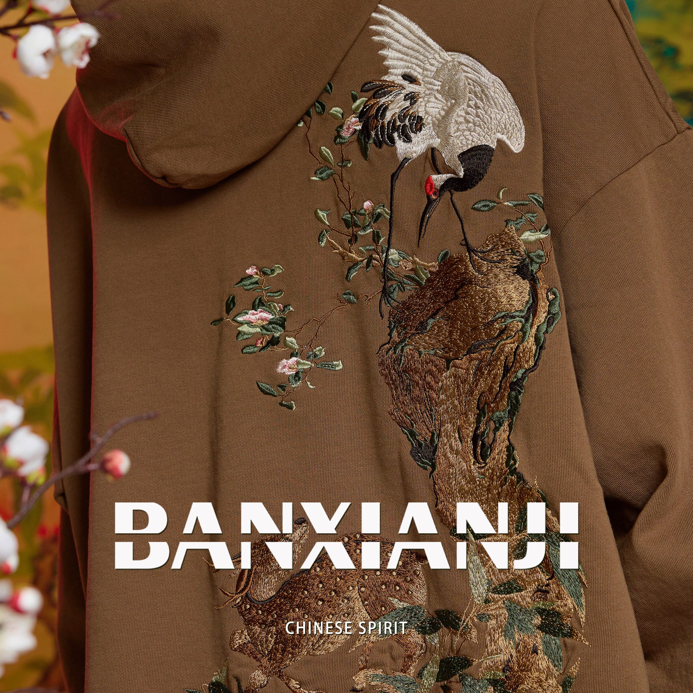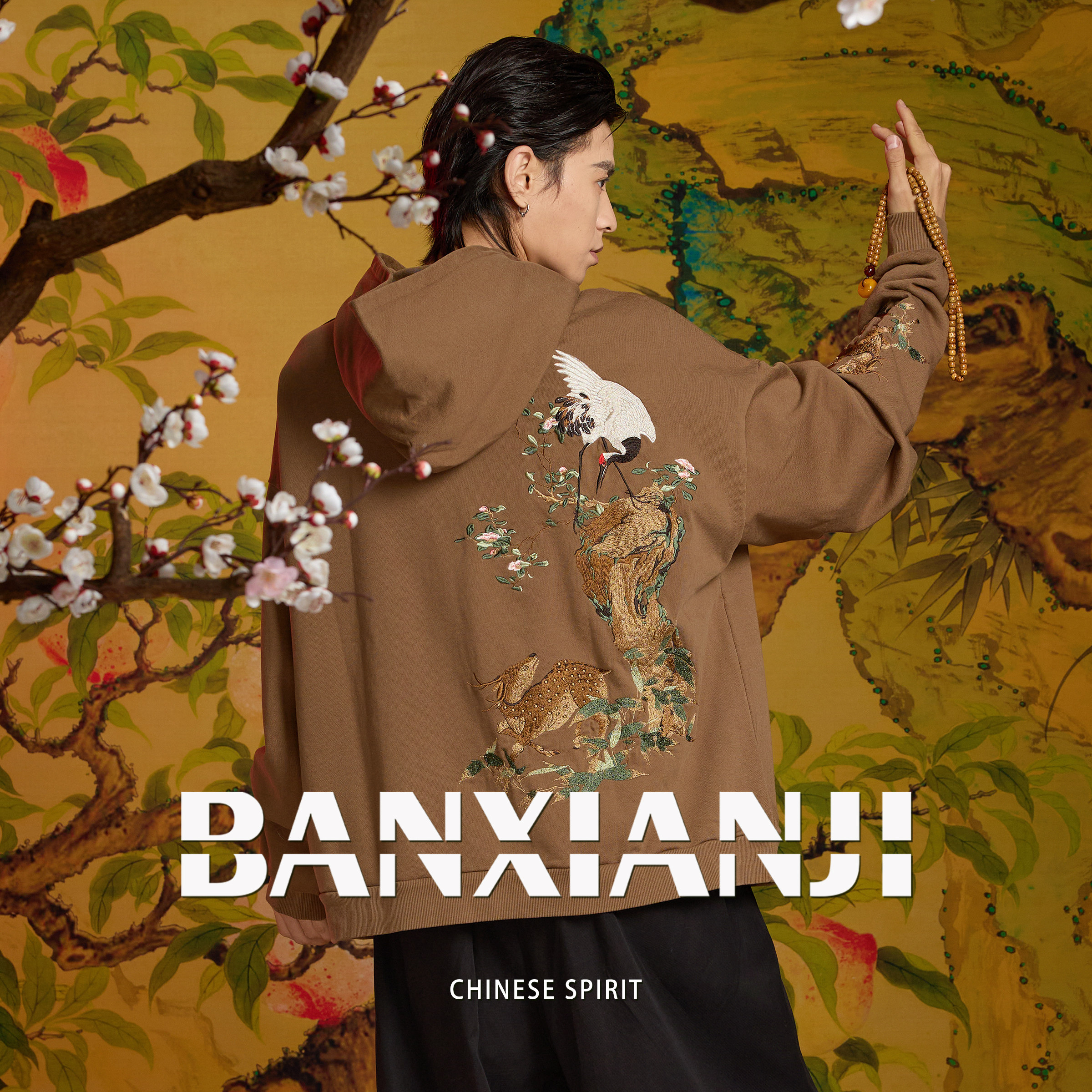 半闲集<六合同春>中国风春秋连帽卫衣重工刺绣国潮复古休闲上衣
