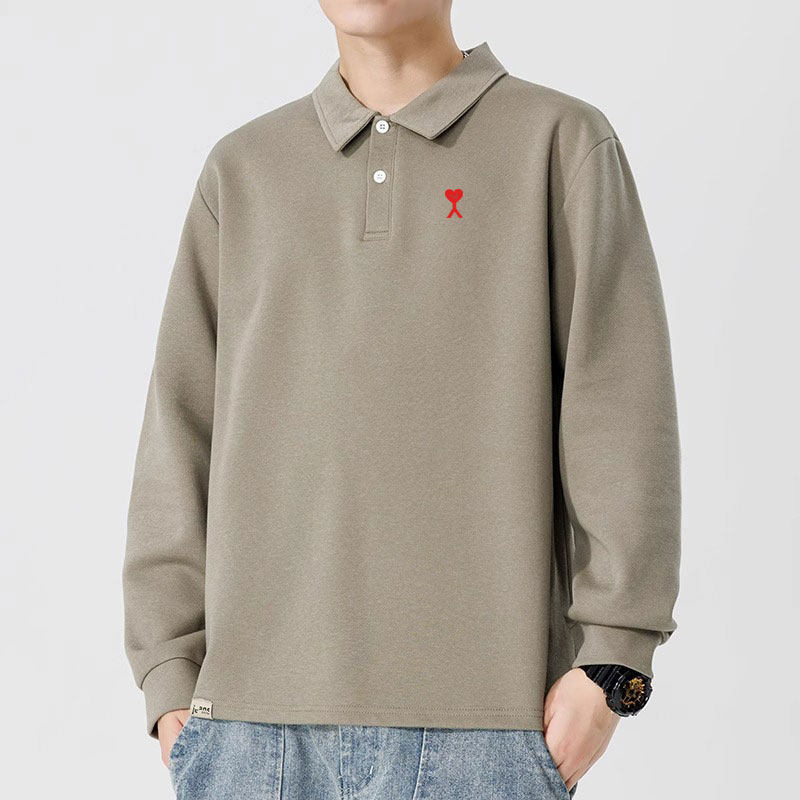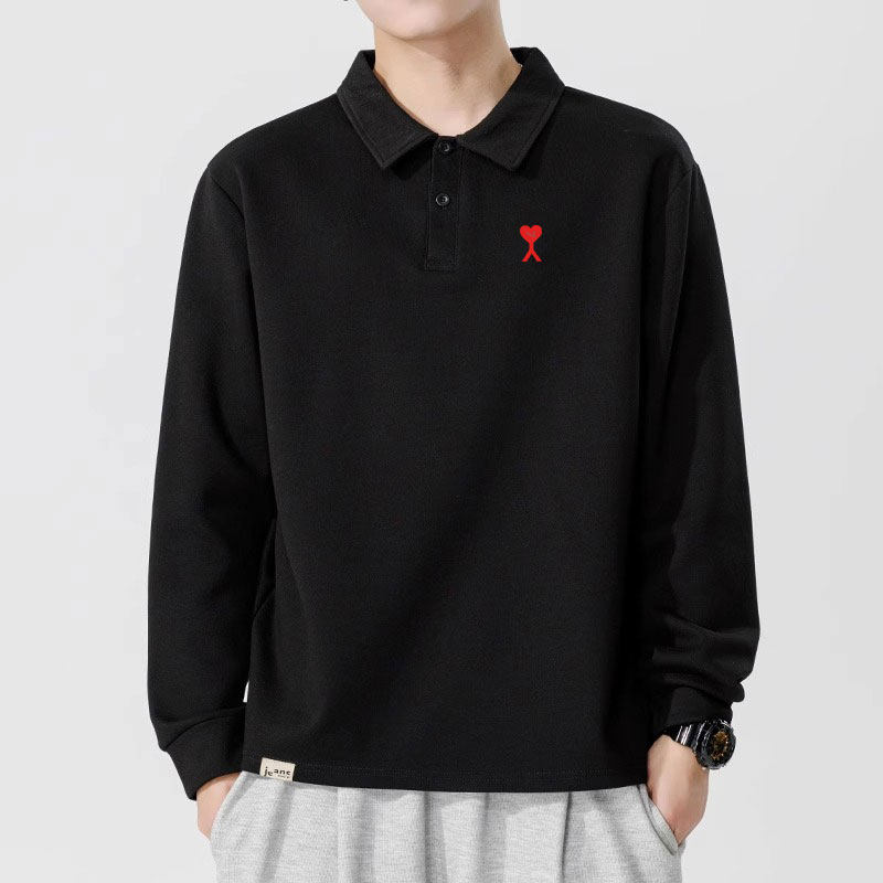 正品AMI DRAJK长袖t恤男士春秋翻领Polo衫内搭打底衫休闲重磅潮流