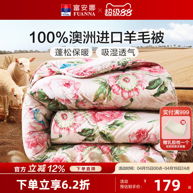 --------------------- 富安娜澳洲进口100纯羊毛被抗菌被子冬被加厚保暖被芯阳光卷毛被 --------------------- --------------------- 【原价】1980元 【券后价】168元