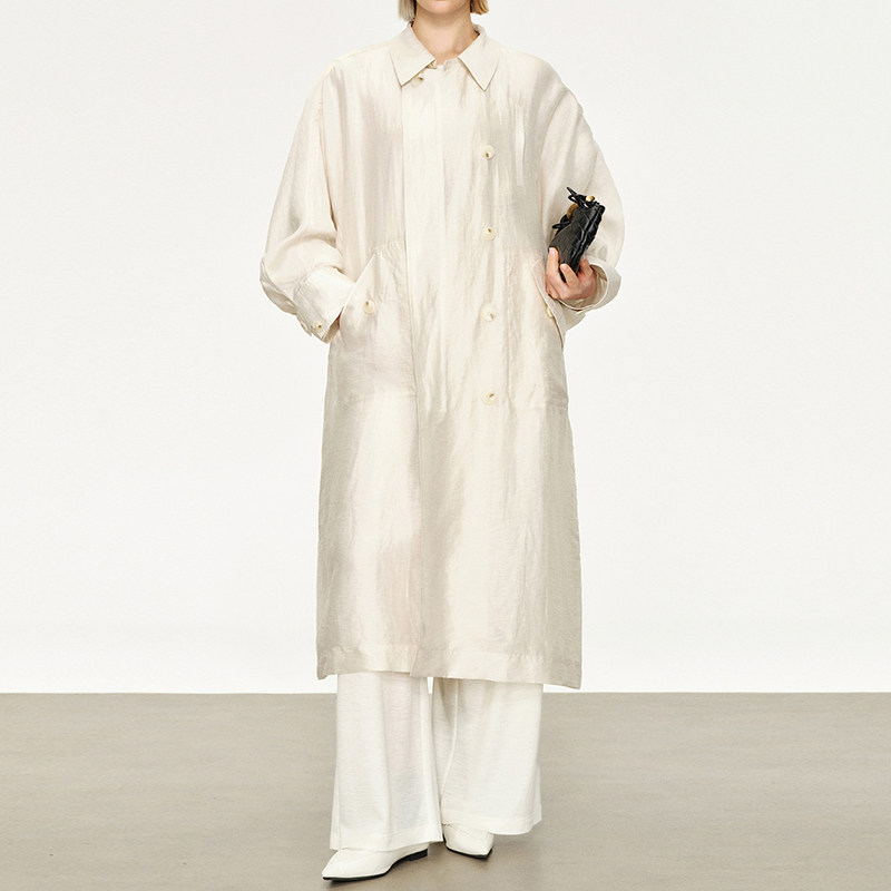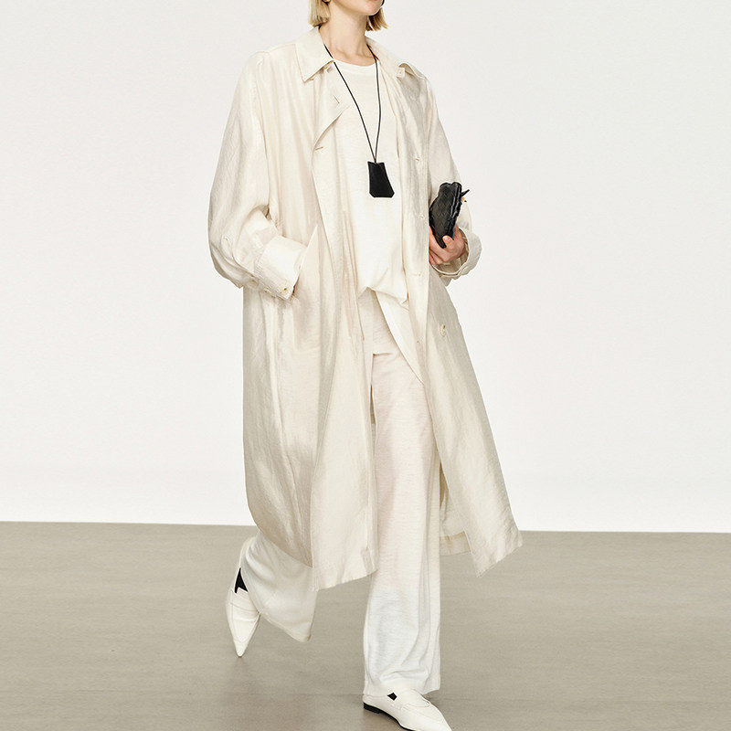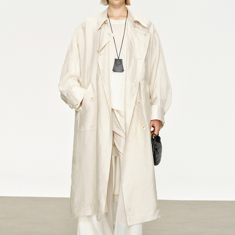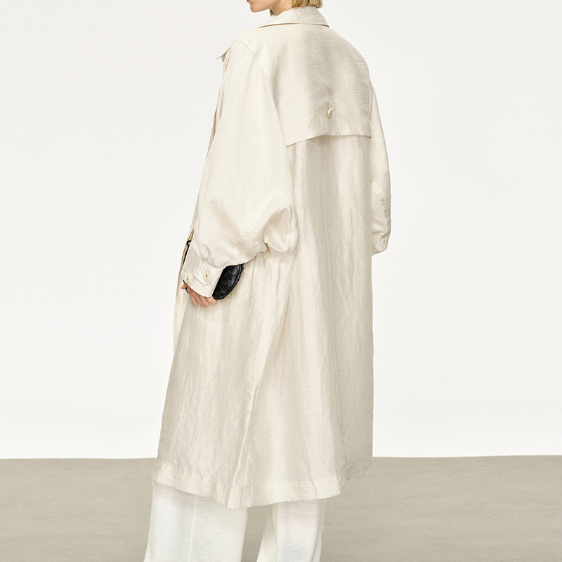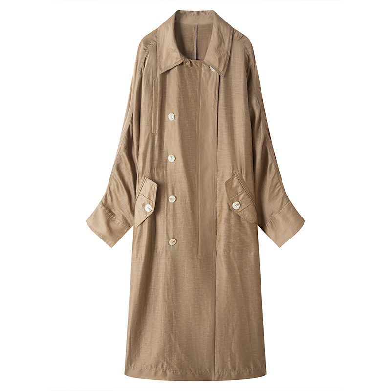 日本offcat中长款防晒风衣女2025夏新款复古英伦风天丝亚麻薄款外