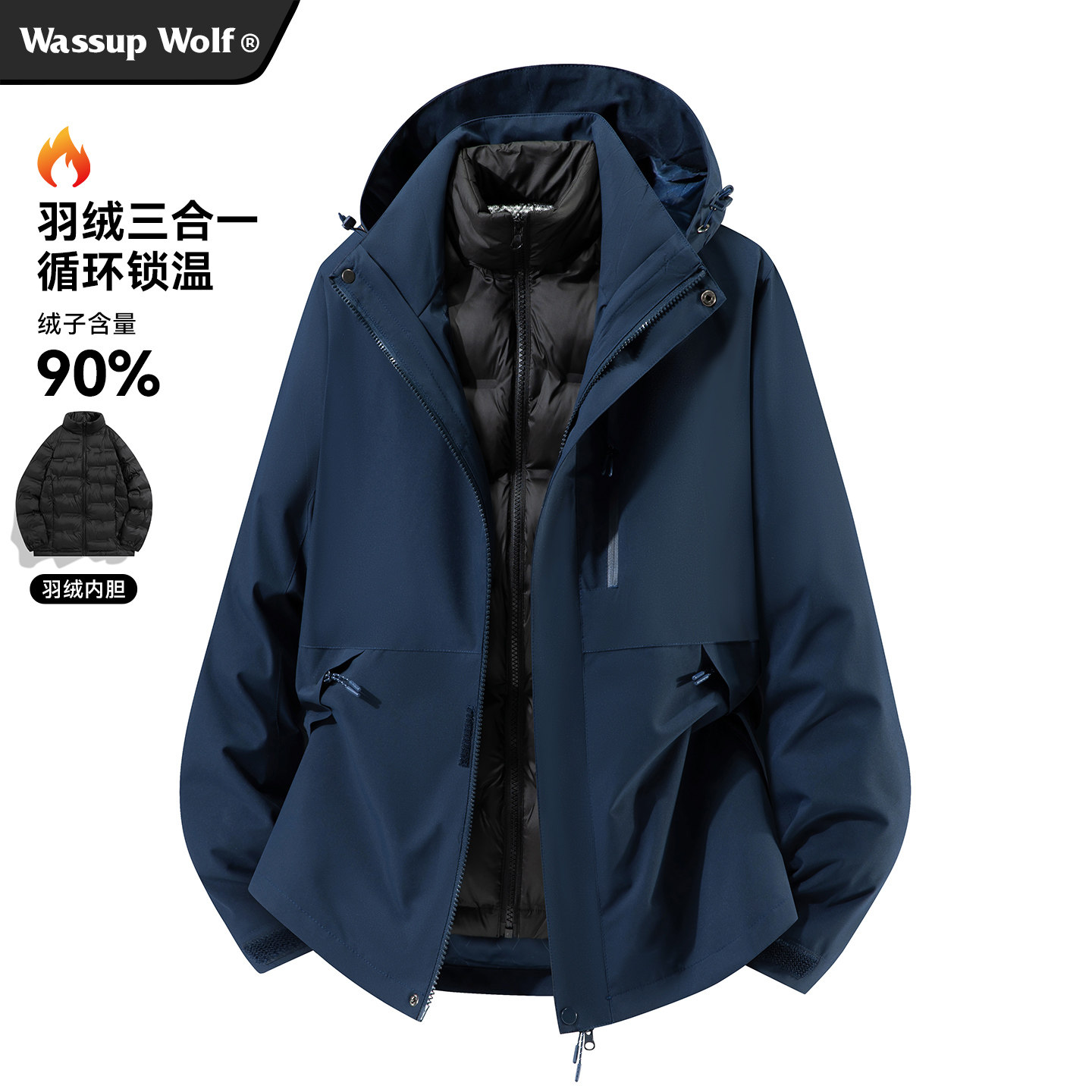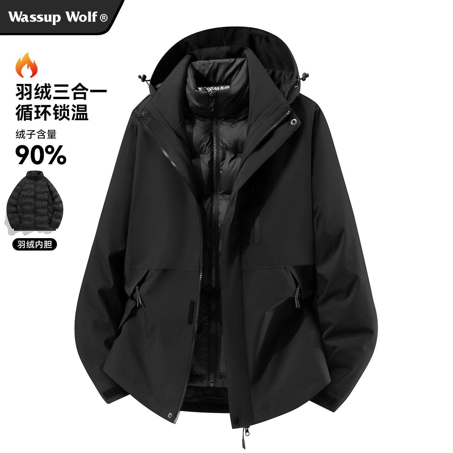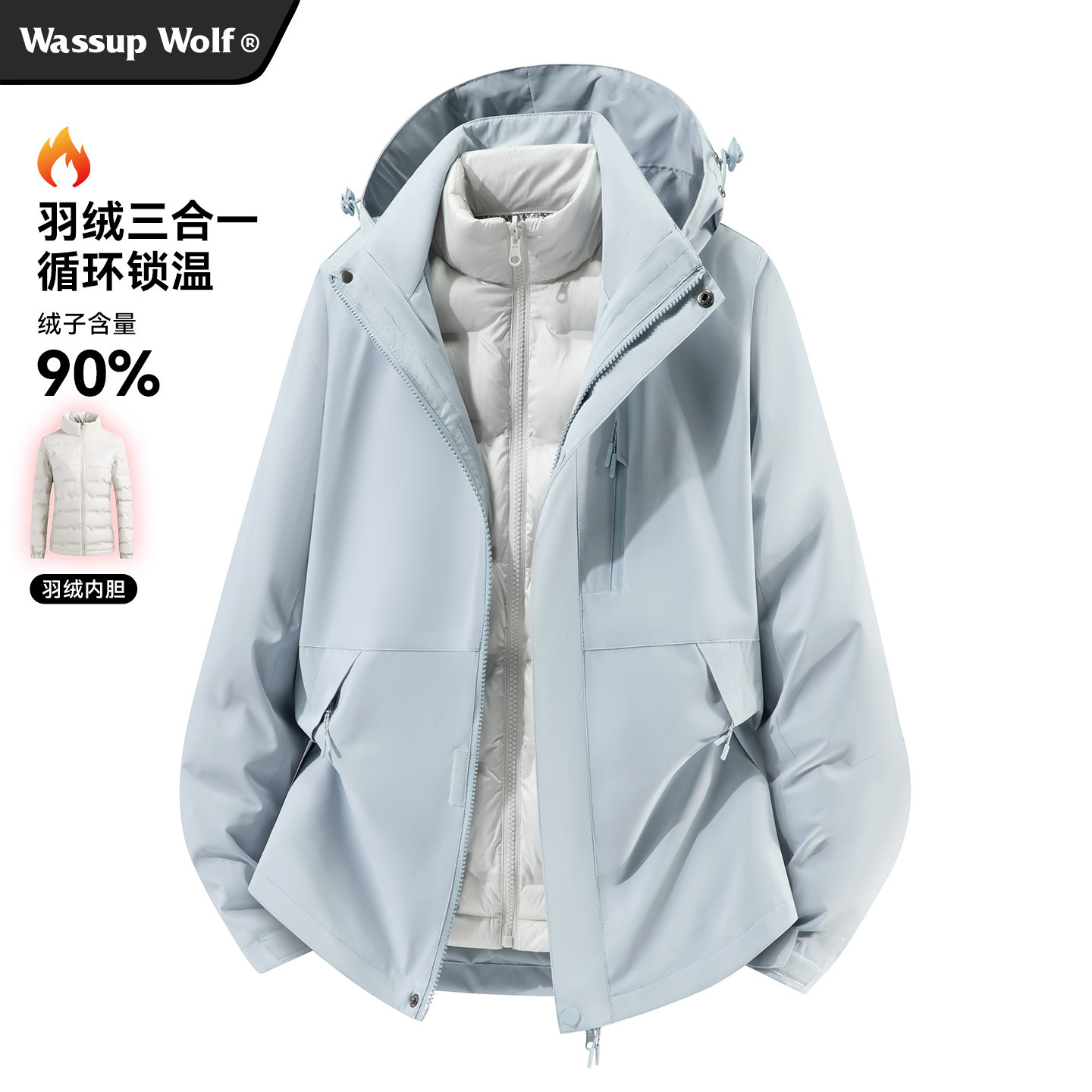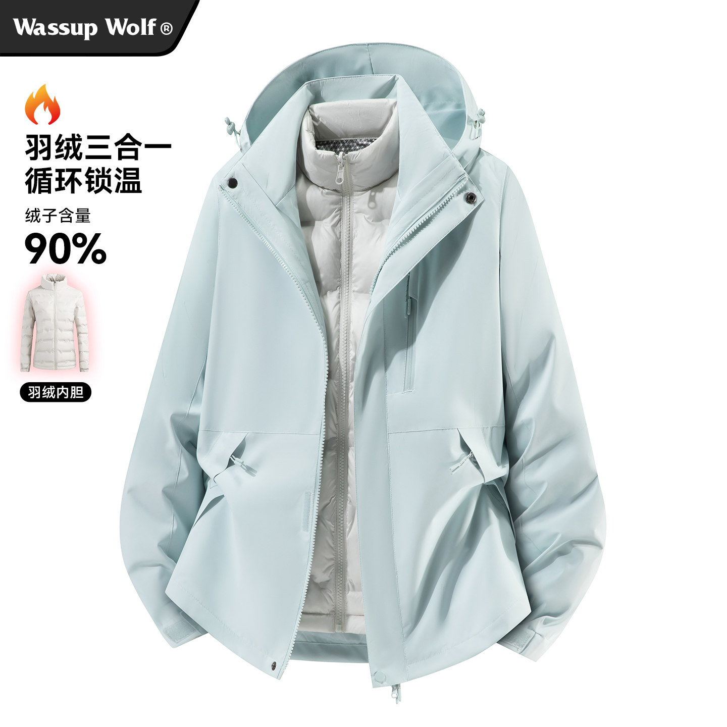 Wassup Wolf粉色羽绒服男女2025新款秋冬三合一登山滑雪冲锋外套