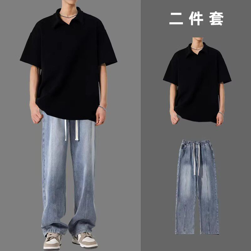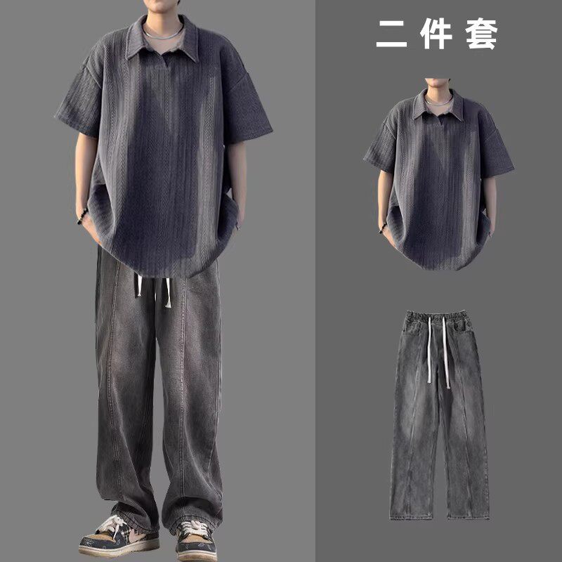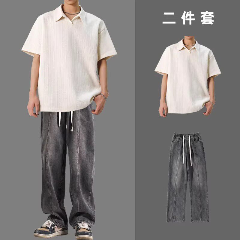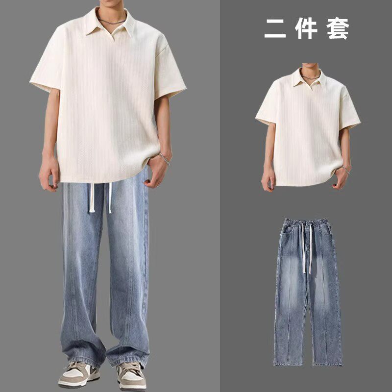 BENTIDEA 麦穗肌理感短袖POLO衫男一套搭配夏季2026款ins港风翻领
