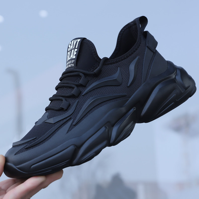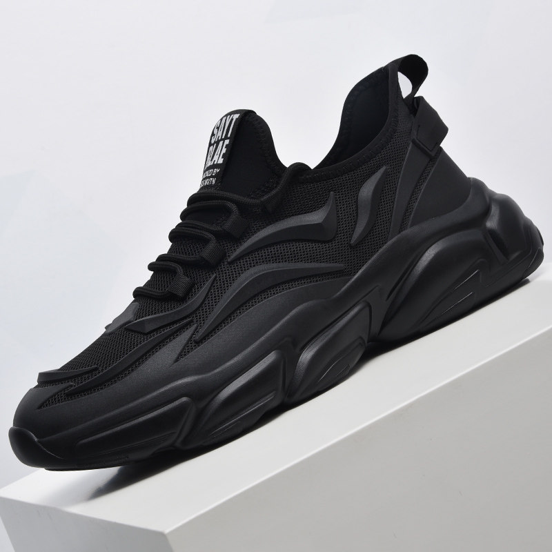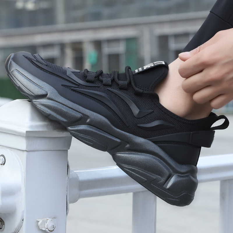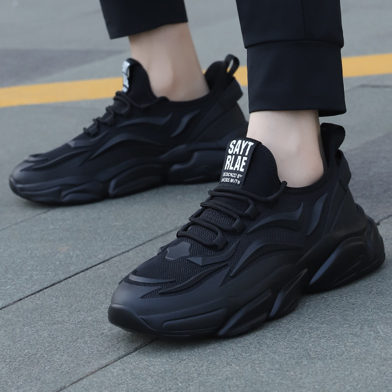 男鞋春季新款潮透气男士运动鞋黑色网面鞋子男冬款增高休闲老爹鞋