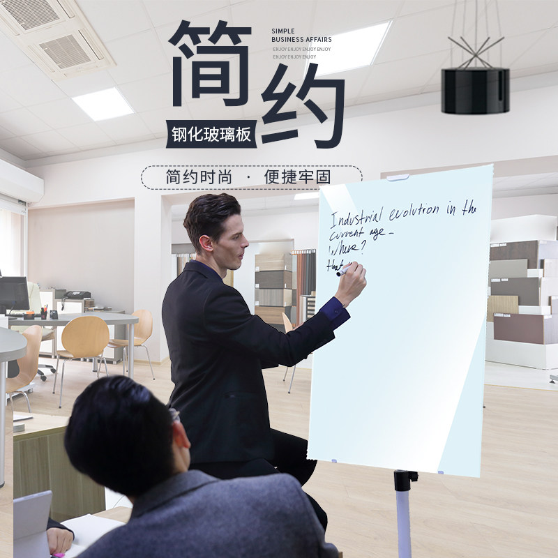 强磁性钢化玻璃白板支架式移动可檫写办公黑板家用教学培训儿童涂