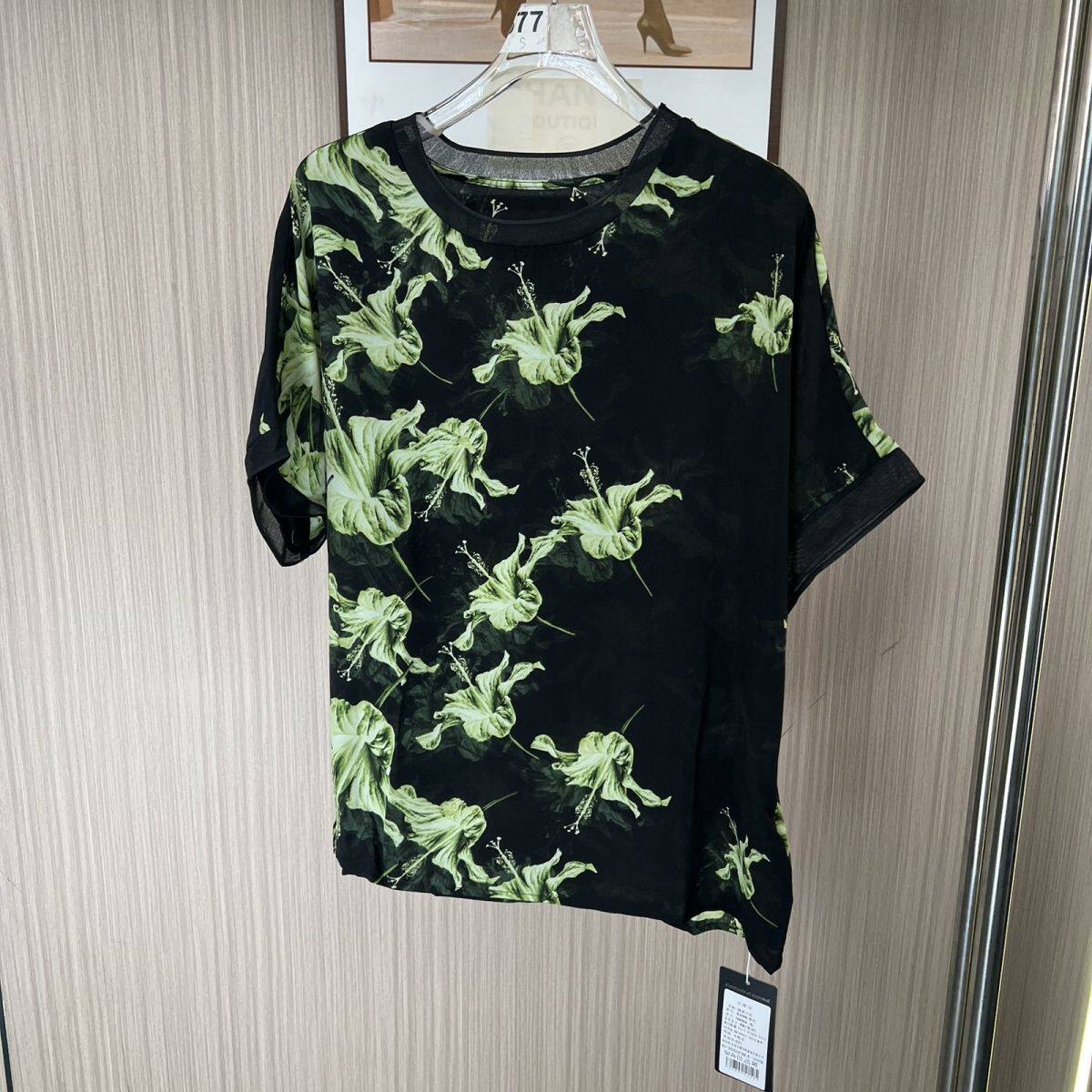 3088品牌撤柜CH夏季新品花色圆领短袖T恤女宽松版上衣