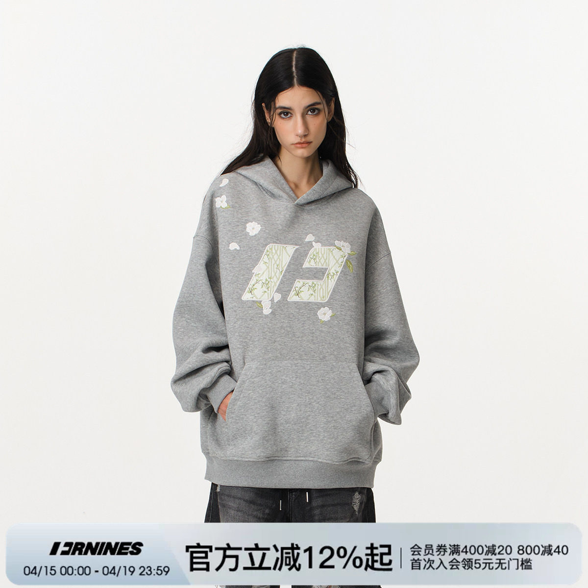 --------------------- FORNINES国潮花伴竹重磅刺绣灰色卫衣男女情侣加绒外套休闲连帽衫 【原售价】209元 【现售价】169元 【推荐理由】