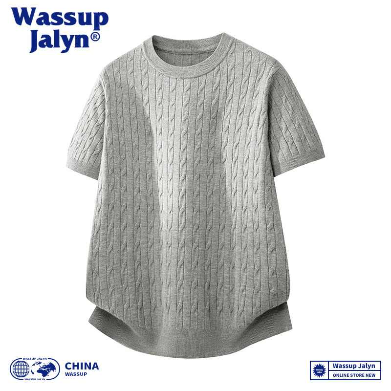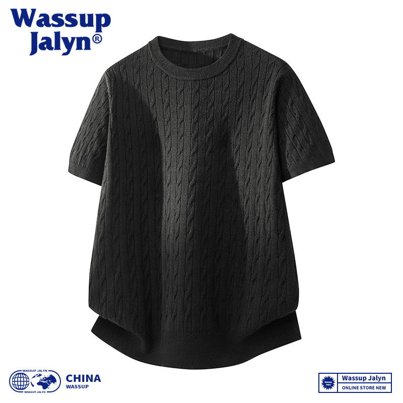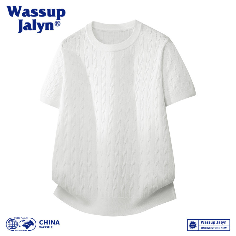 WASSUP JALYN针织提花短袖t恤男款休闲纯色2026夏季新款圆领上衣