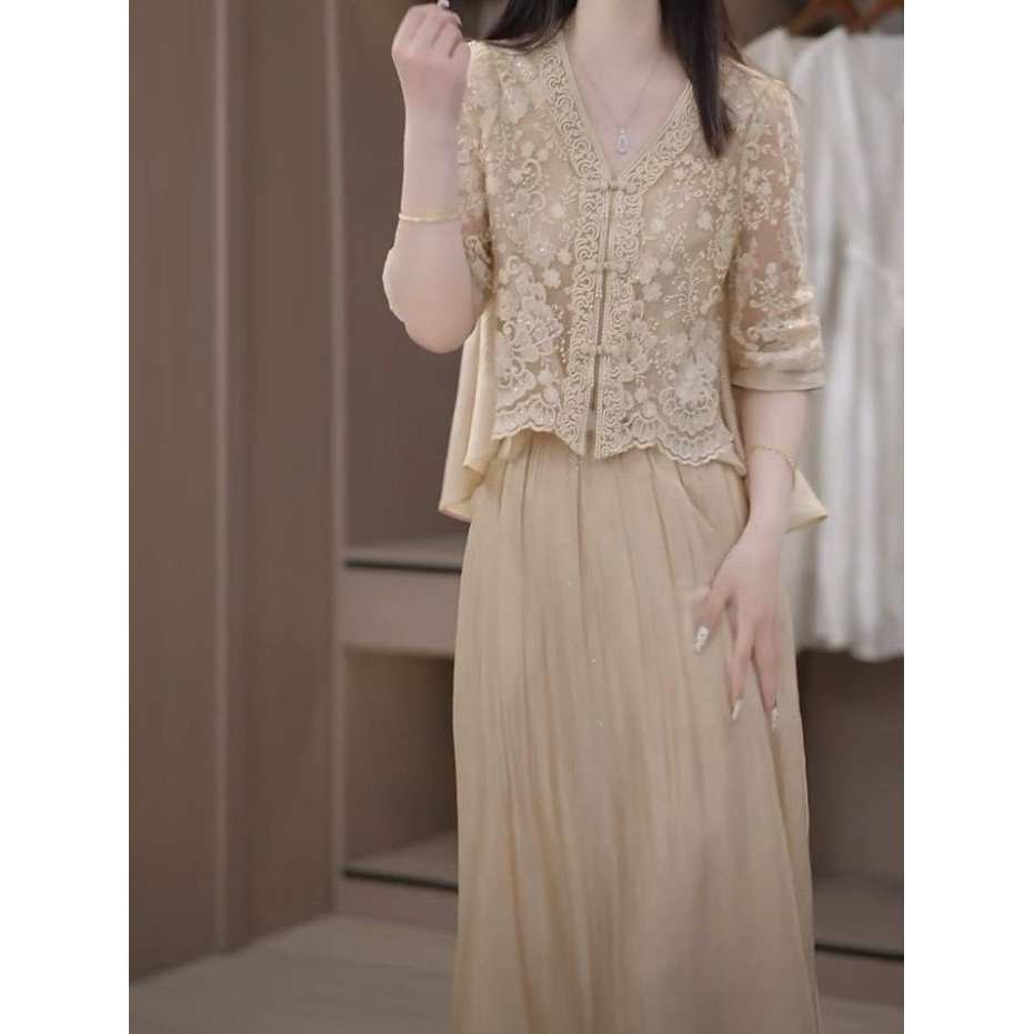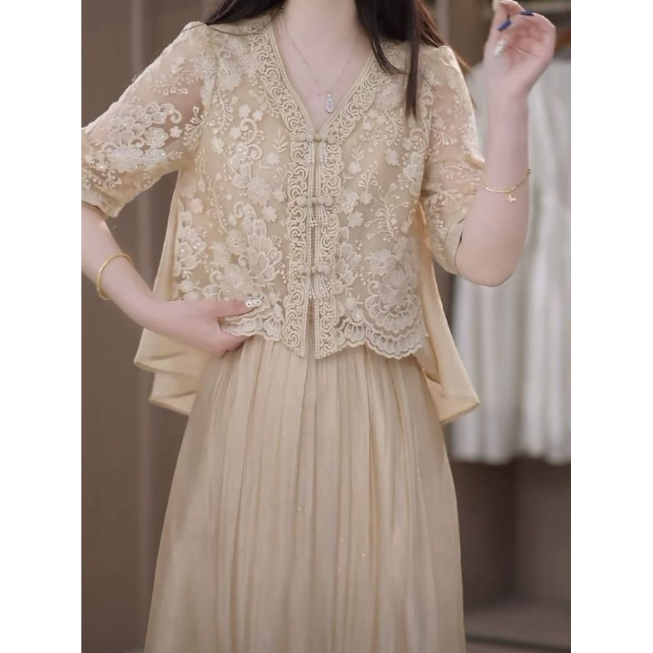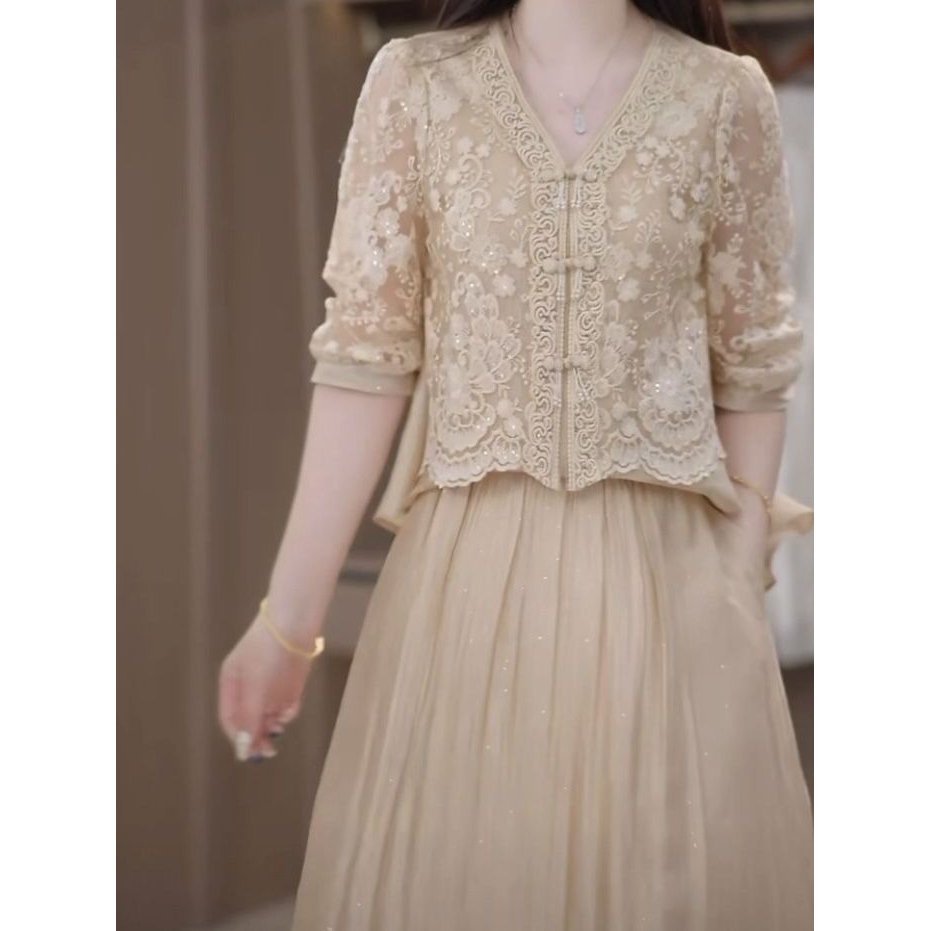 2026春夏新款修身显瘦礼服裙高档冰感醋酸时尚上衣+半身裙两件套