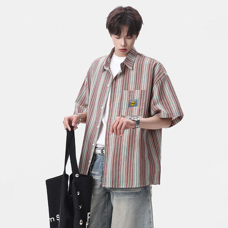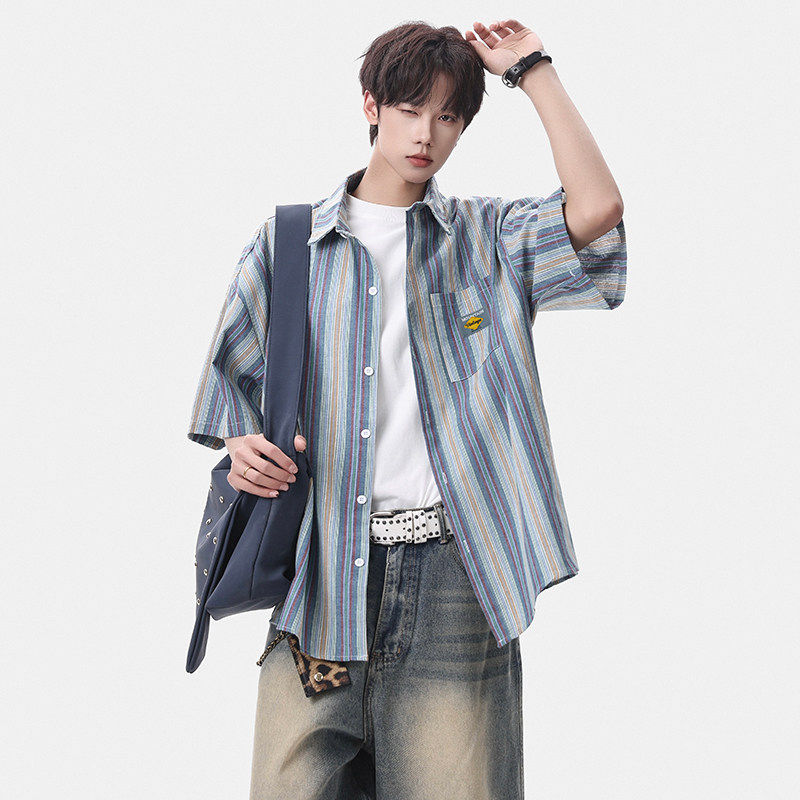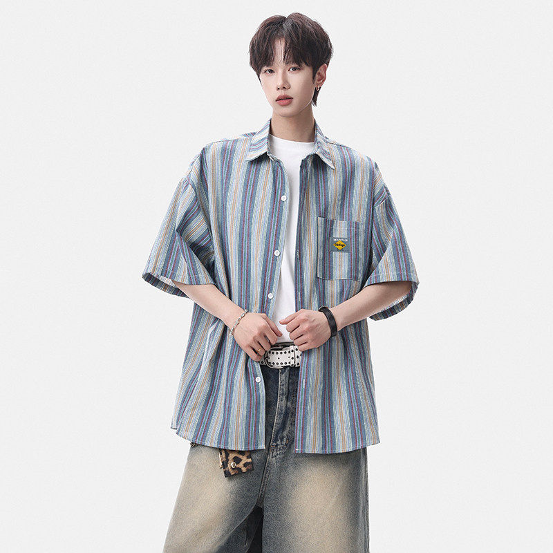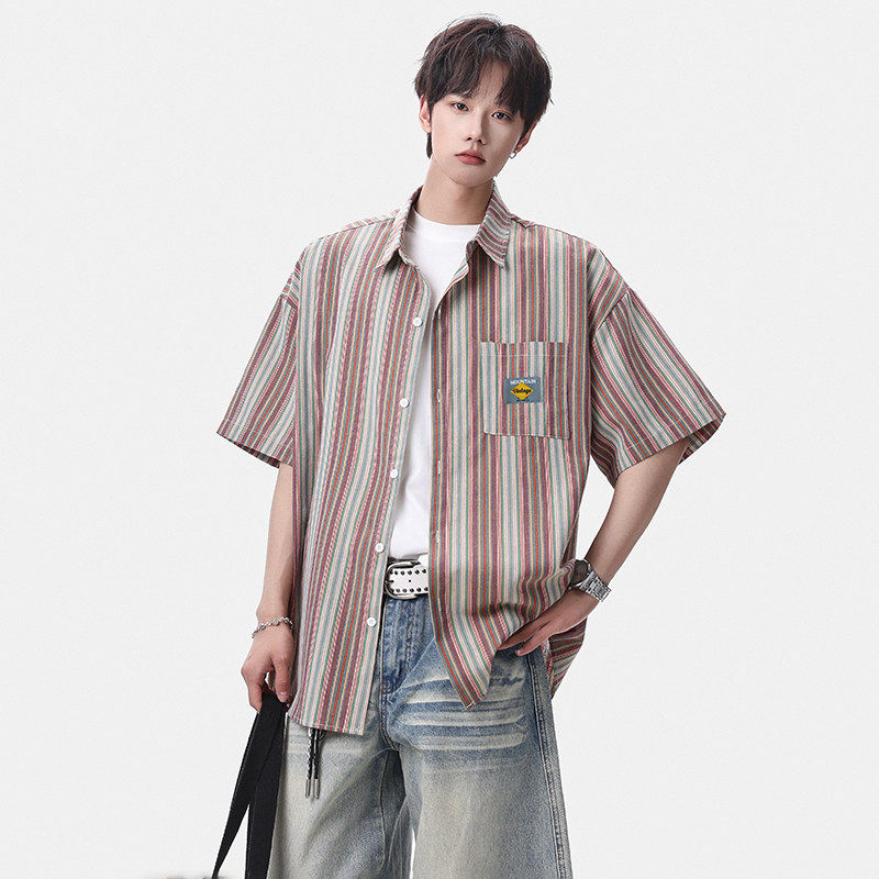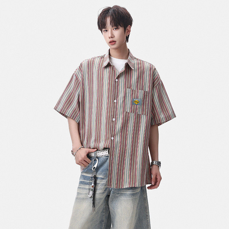 淘宝Grinch1928旋律风车男装第四十九天亿万少年宽松大码条纹短袖衬衣