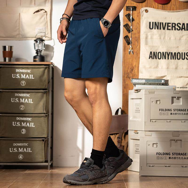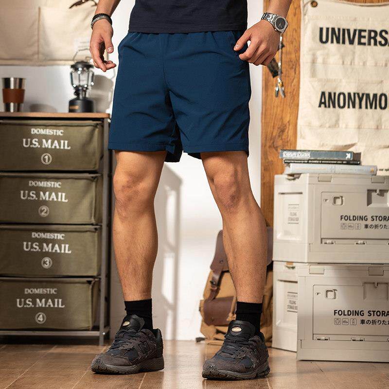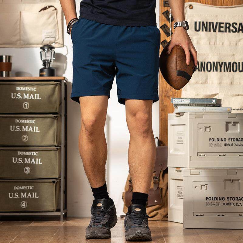 藏青色速干透气运动短裤男健身四分2025夏季户外跑步弹力4分裤子