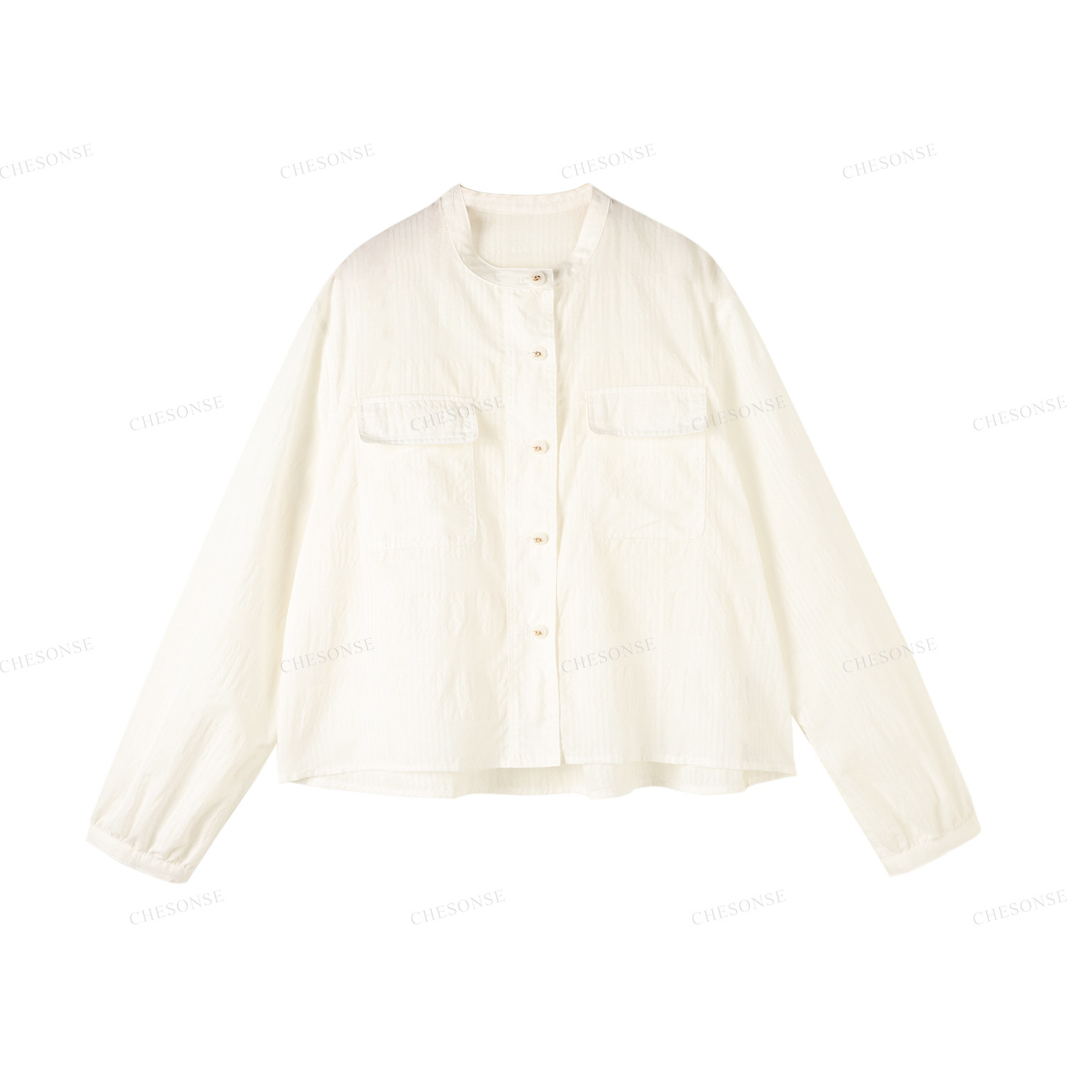 CHESONSE【夏日水边】雅家 减龄白色薄款宽松直筒短外套6046