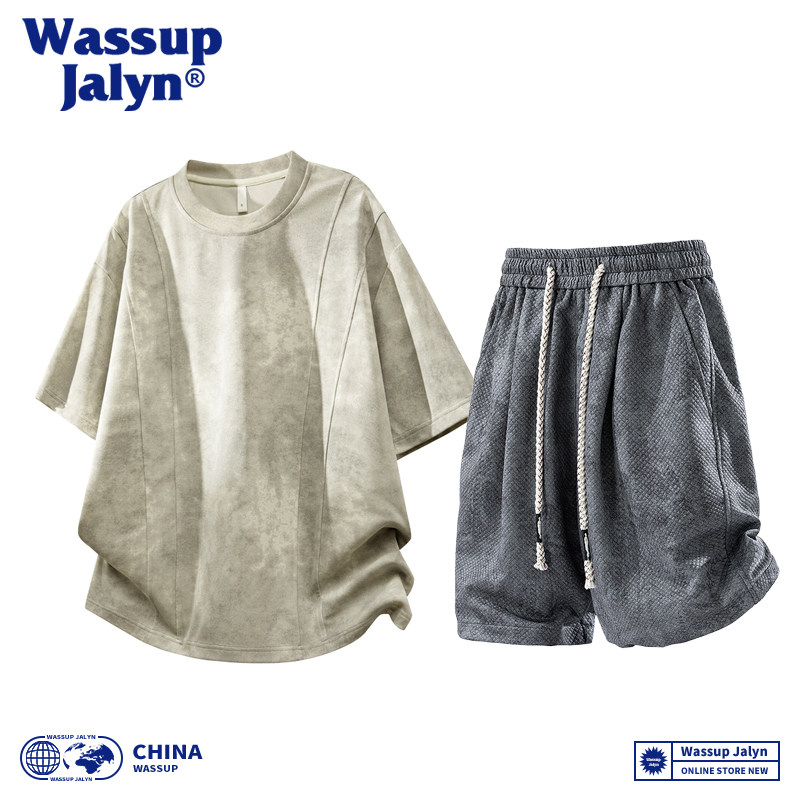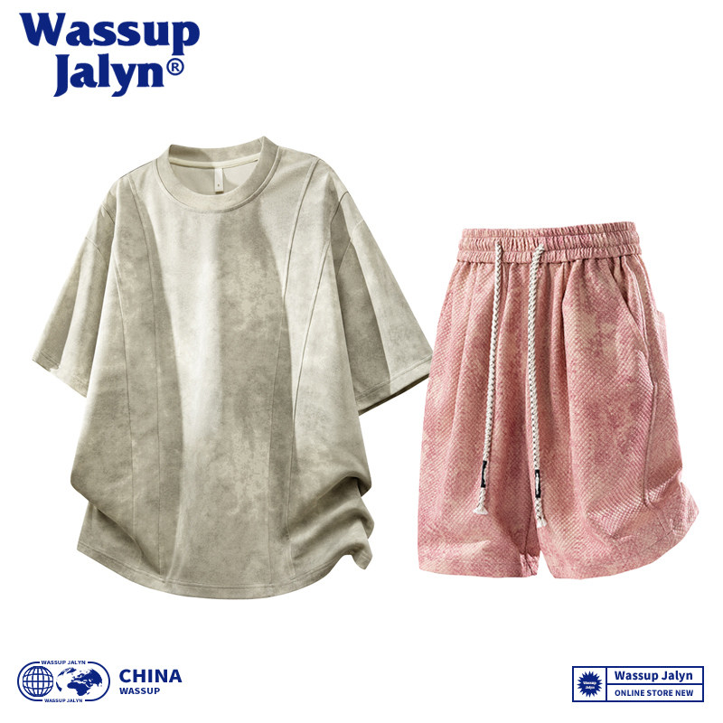 淘宝WASSUP JALYN美式短袖T恤套装男夏季潮牌宽松半袖休闲短裤两件套