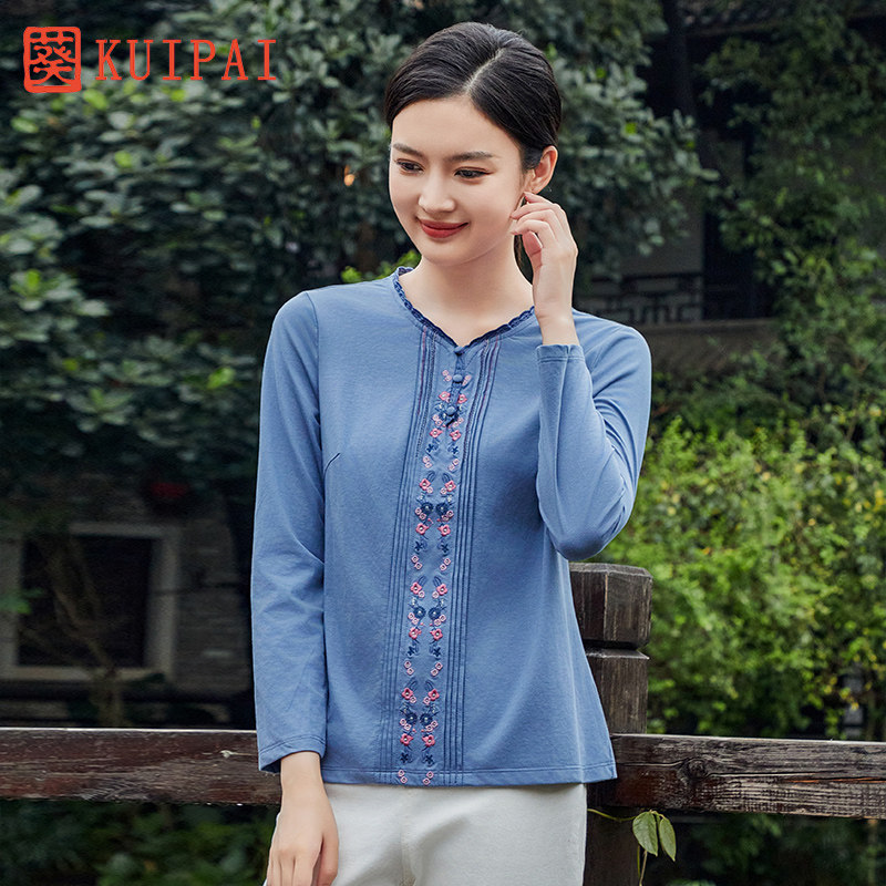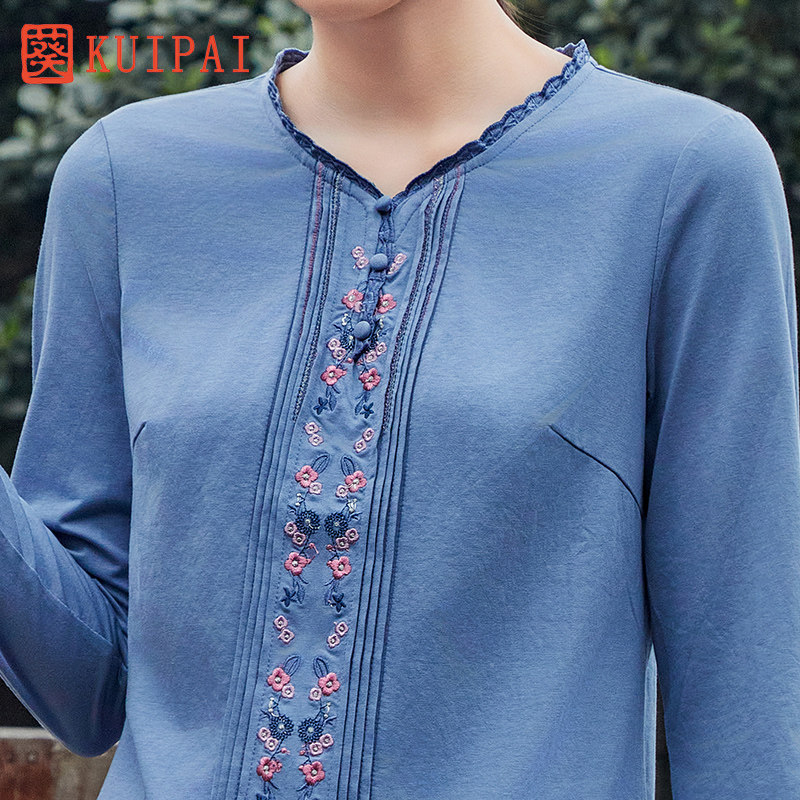 --------------------- 葵牌秋季新款原创中国风上衣时尚绣花民族风V领中年妈妈装长袖T恤 【原售价】489元 【现售价】225.1元 【推荐理由】