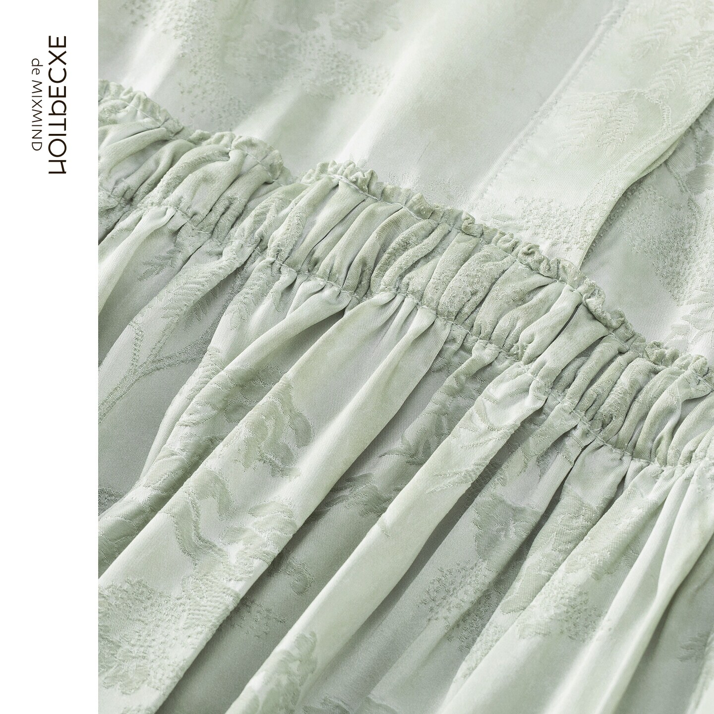 EXCEPTION例外女装2026夏季经典国潮提花连衣裙腰部抽褶宽松长裙