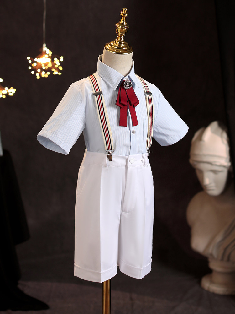 男童礼服套装短袖白色花童礼服男孩主持人钢琴演出团体表演服六一
