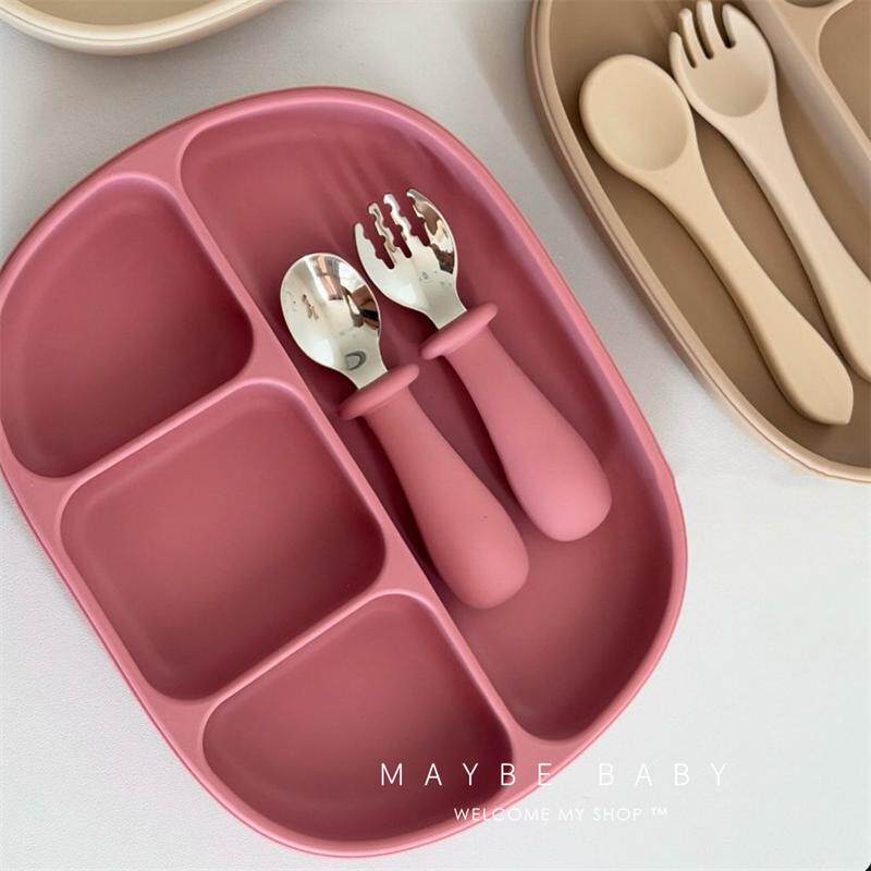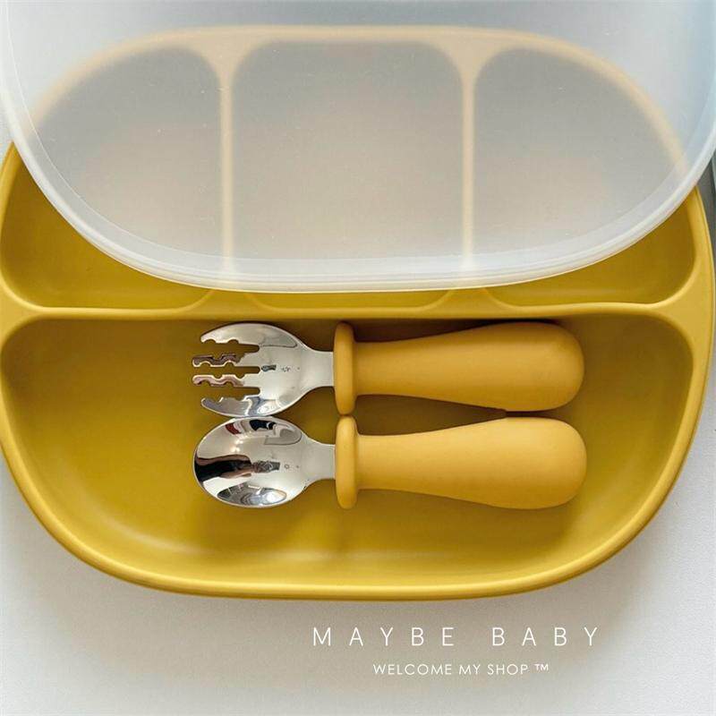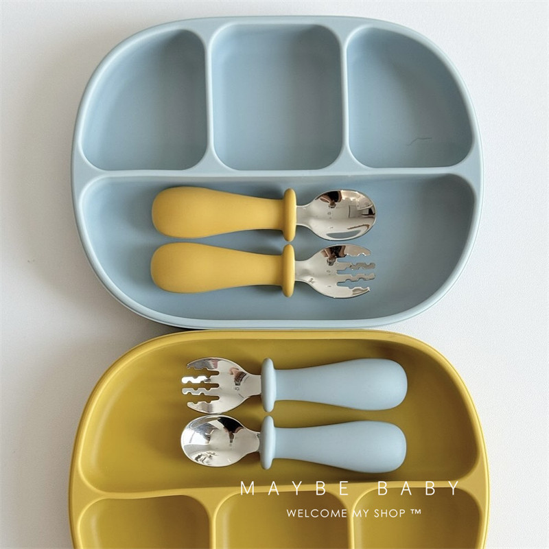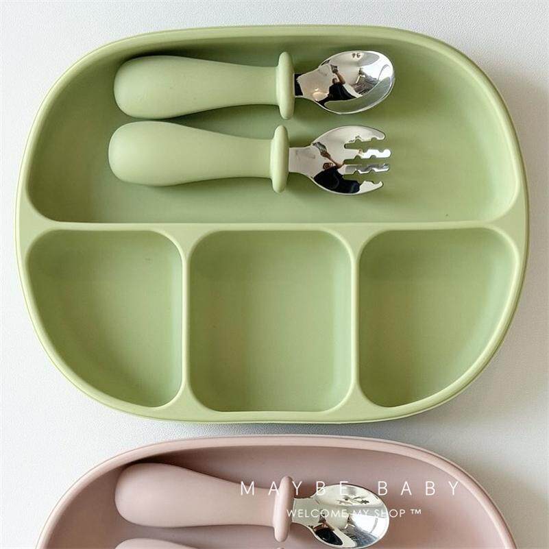 韩国ins儿童餐具套装婴儿用品硅胶碗叉子勺防摔宝宝辅食碗餐盘