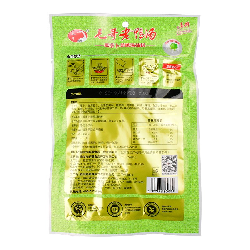 --------------------- 毛哥酸萝卜老鸭汤炖料350g*3袋清汤炖鸡炖鸭排骨猪蹄炖汤料煲汤料 【原售价】10元 【现售价】4.8元 【推荐理由】