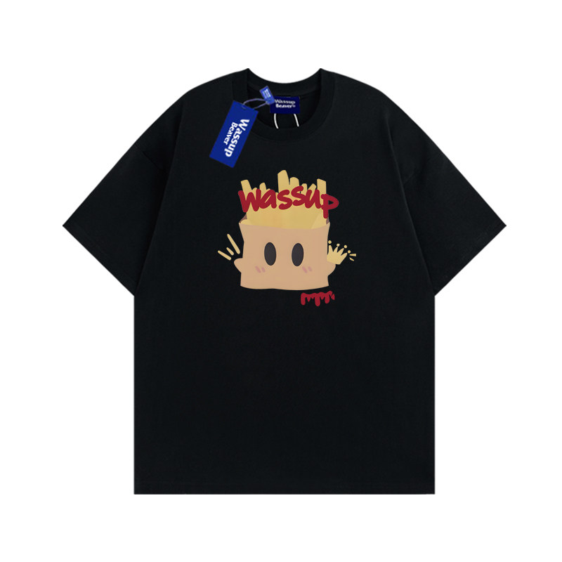 WASSUP BEAVER美式薯条纯棉印花短袖男女夏季情侣宽松半袖上衣T恤