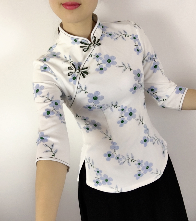 淘宝傲雪屋名国风文艺复古改良中袖旗袍上衣中式修身显瘦唐装女茶艺服
