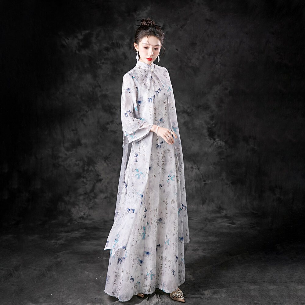 --------------------- 紫缘萱中式舞台装演出服茶艺茶歇裙印花水墨佛系清冷高级礼服长袖 【原售价】468元 【现售价】368元 【推荐理由】