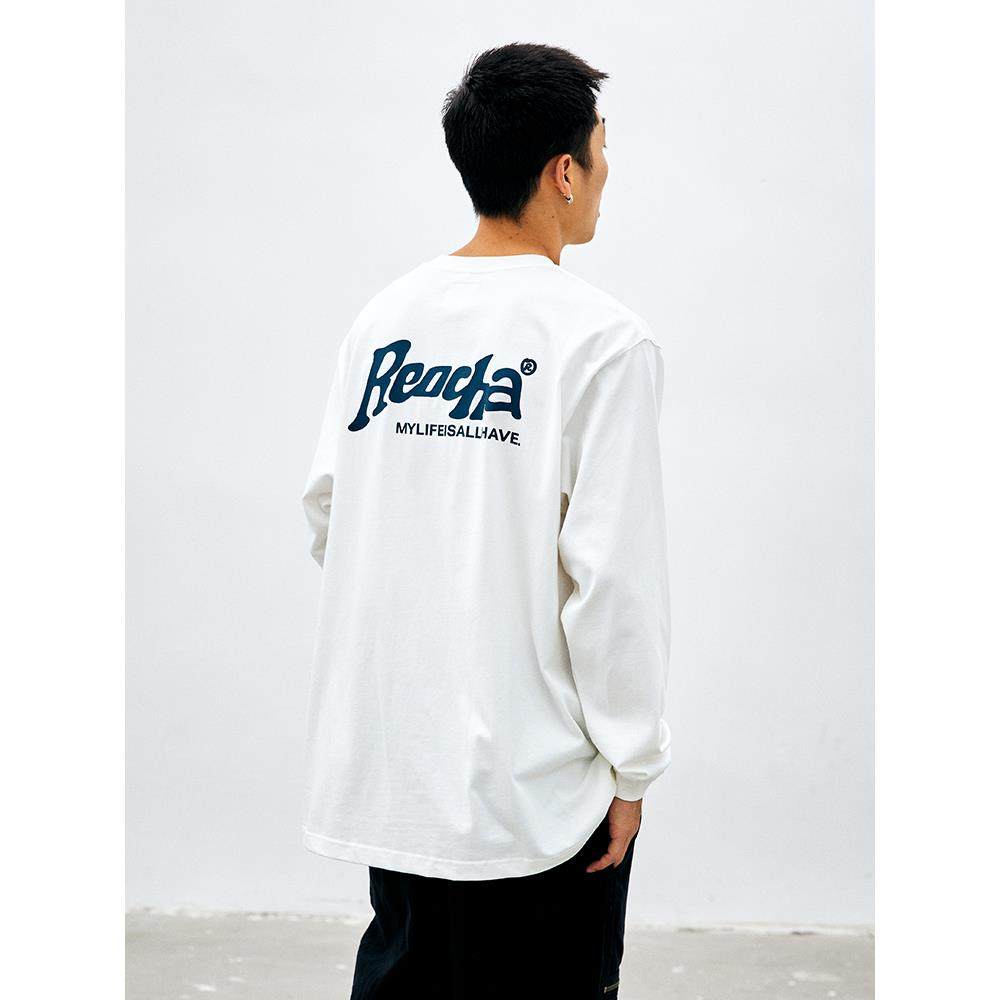 REOCHA热呈 LOGO印花长袖T恤男秋冬纯棉圆领情侣宽松潮牌打底上衣