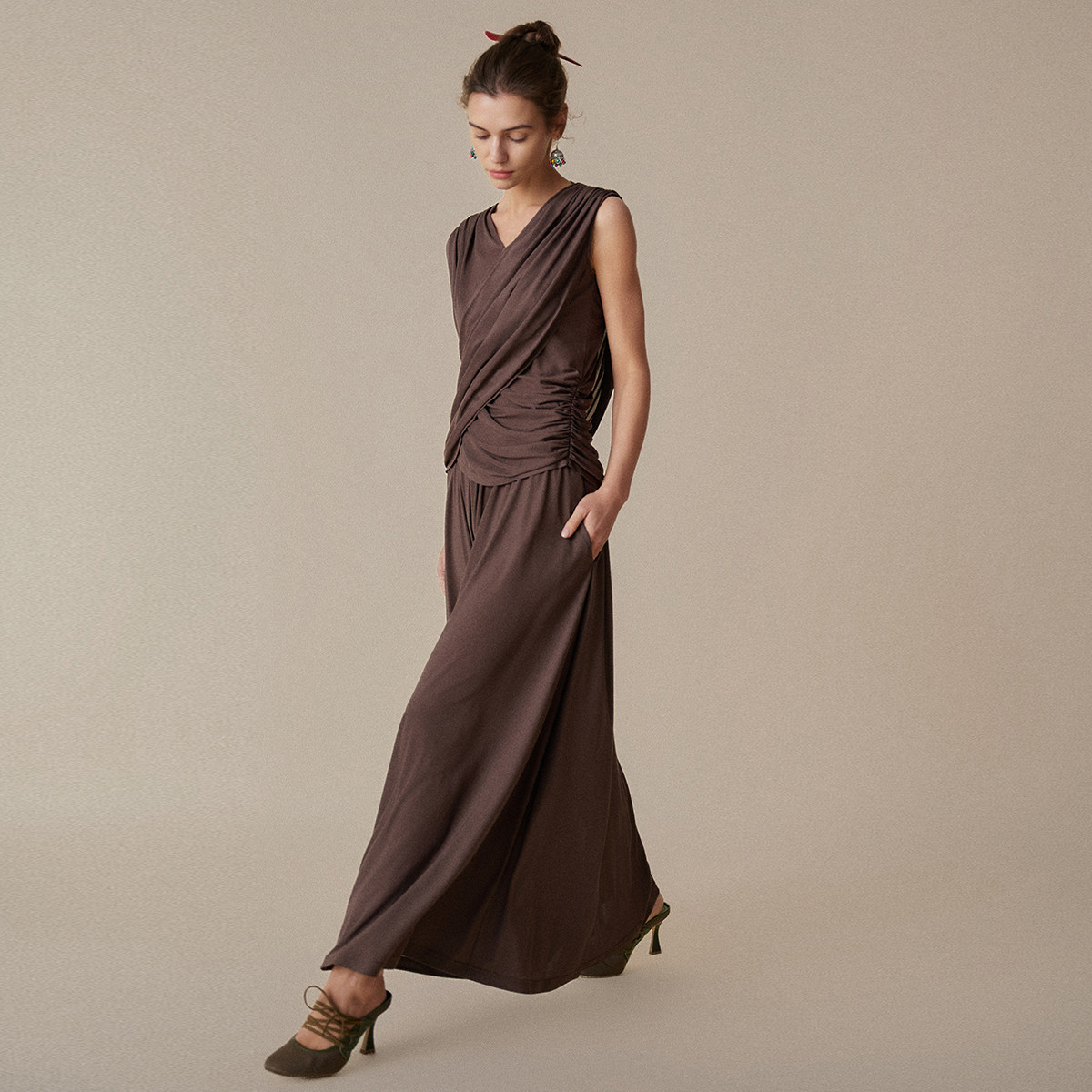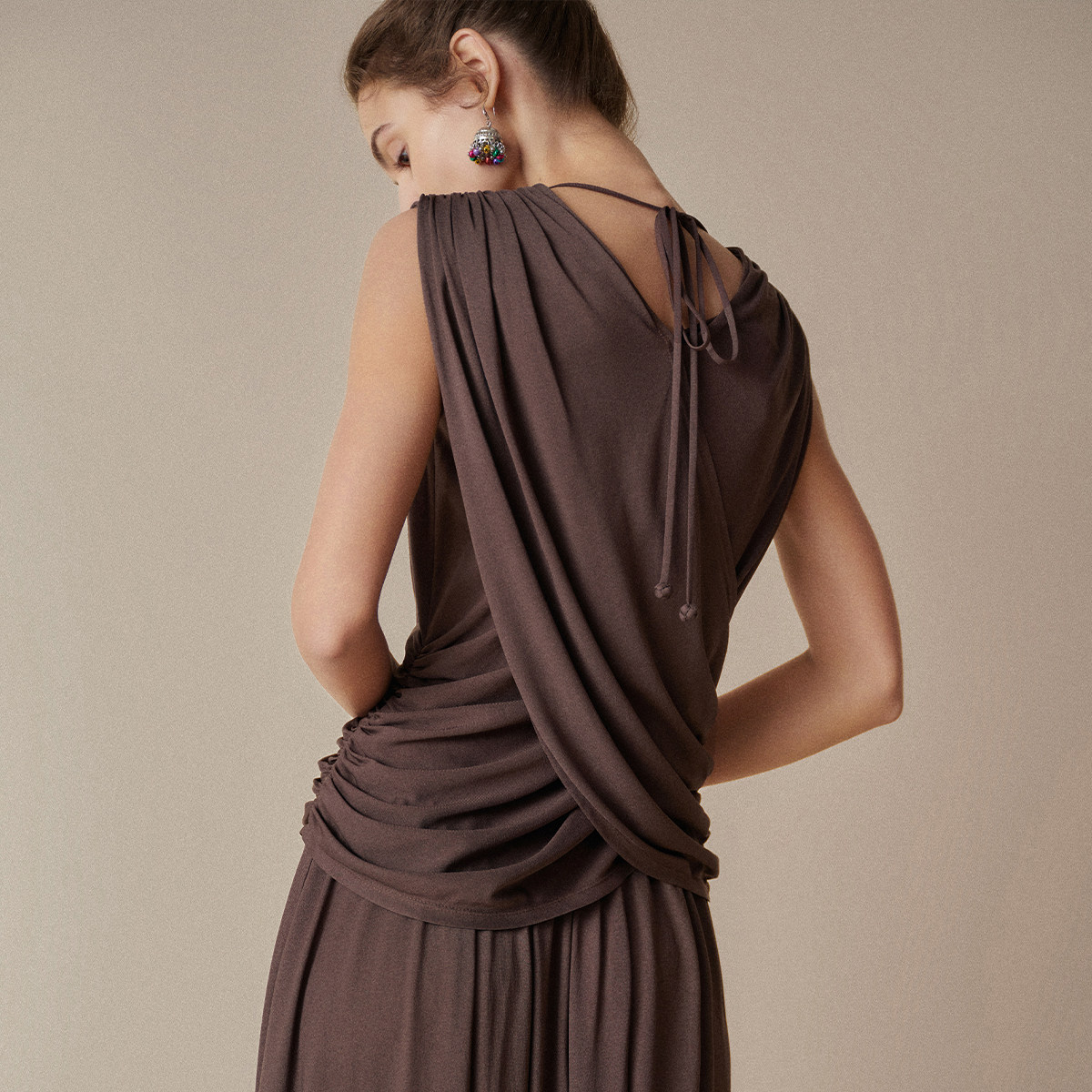 --------------------- HUI卉茶褐色希腊美学风流动感浪漫褶皱背心无袖上衣2026春新款 【原售价】2399元 【现售价】2159元 【推荐理由】