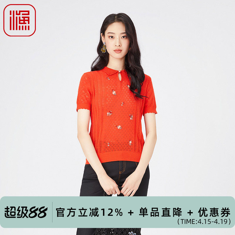 --------------------- 渔牌女装2024春夏新款镂空针织翻领短袖毛衣绣花休闲上衣FGGA1006 --------------------- --------------------- 【原价】1258元 【券后价】314元