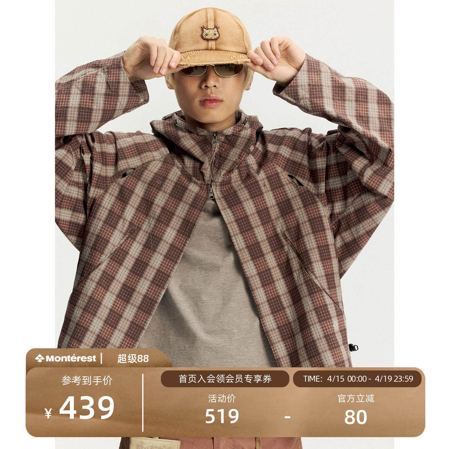 --------------------- 瞬时山野Monterest复古格纹肌理弧线廓形宽松休闲连帽格子外套男 【原售价】549元 【现售价】439元 【推荐理由】