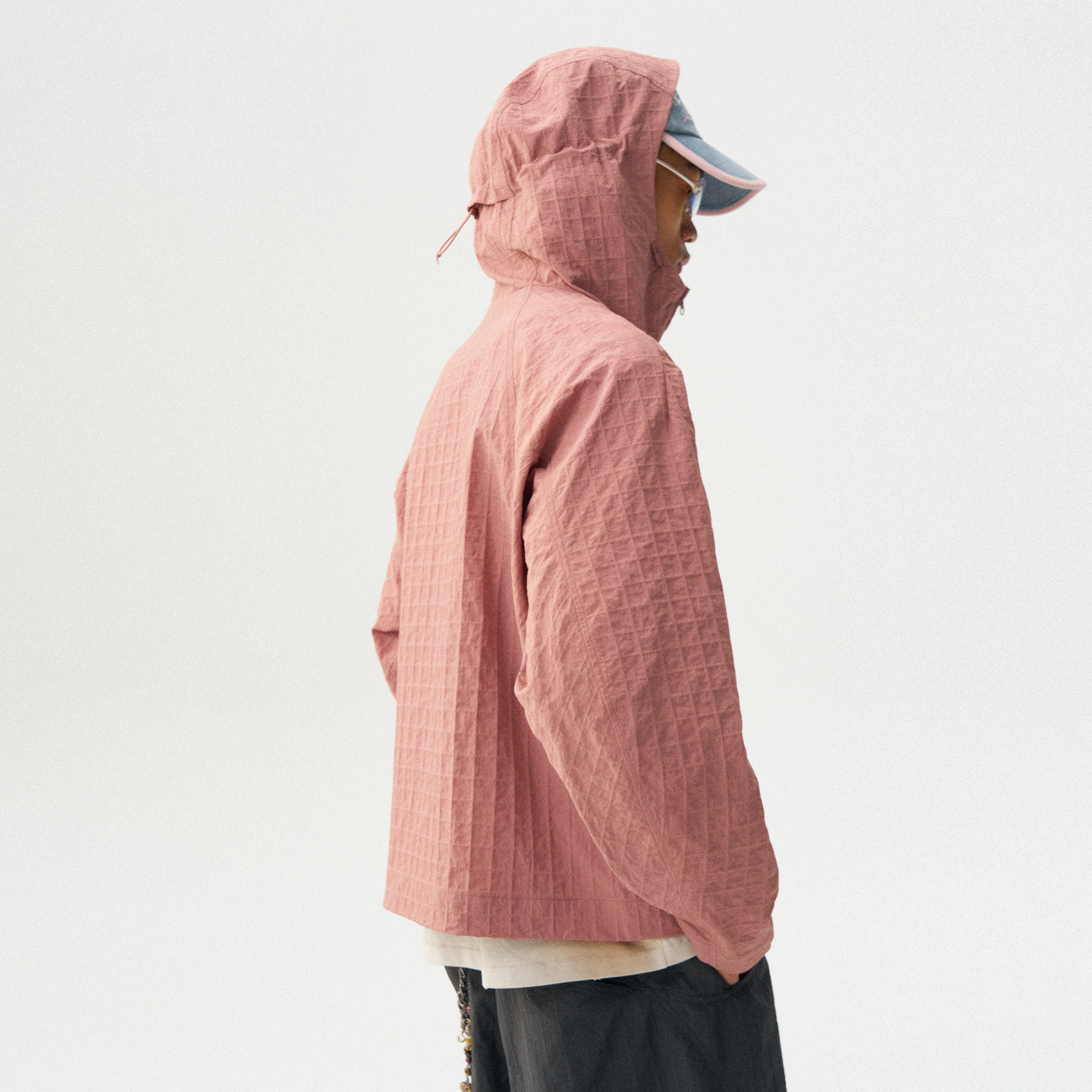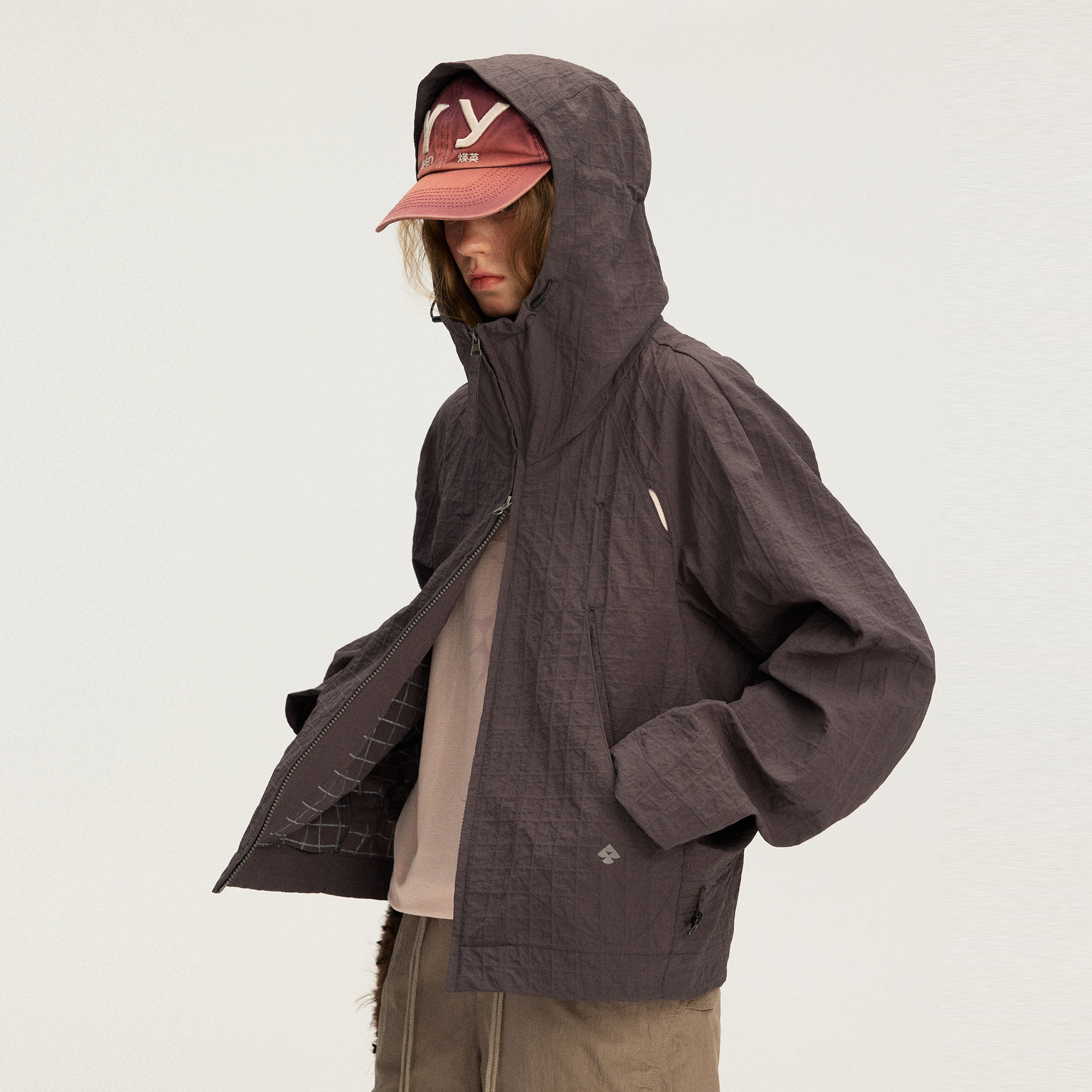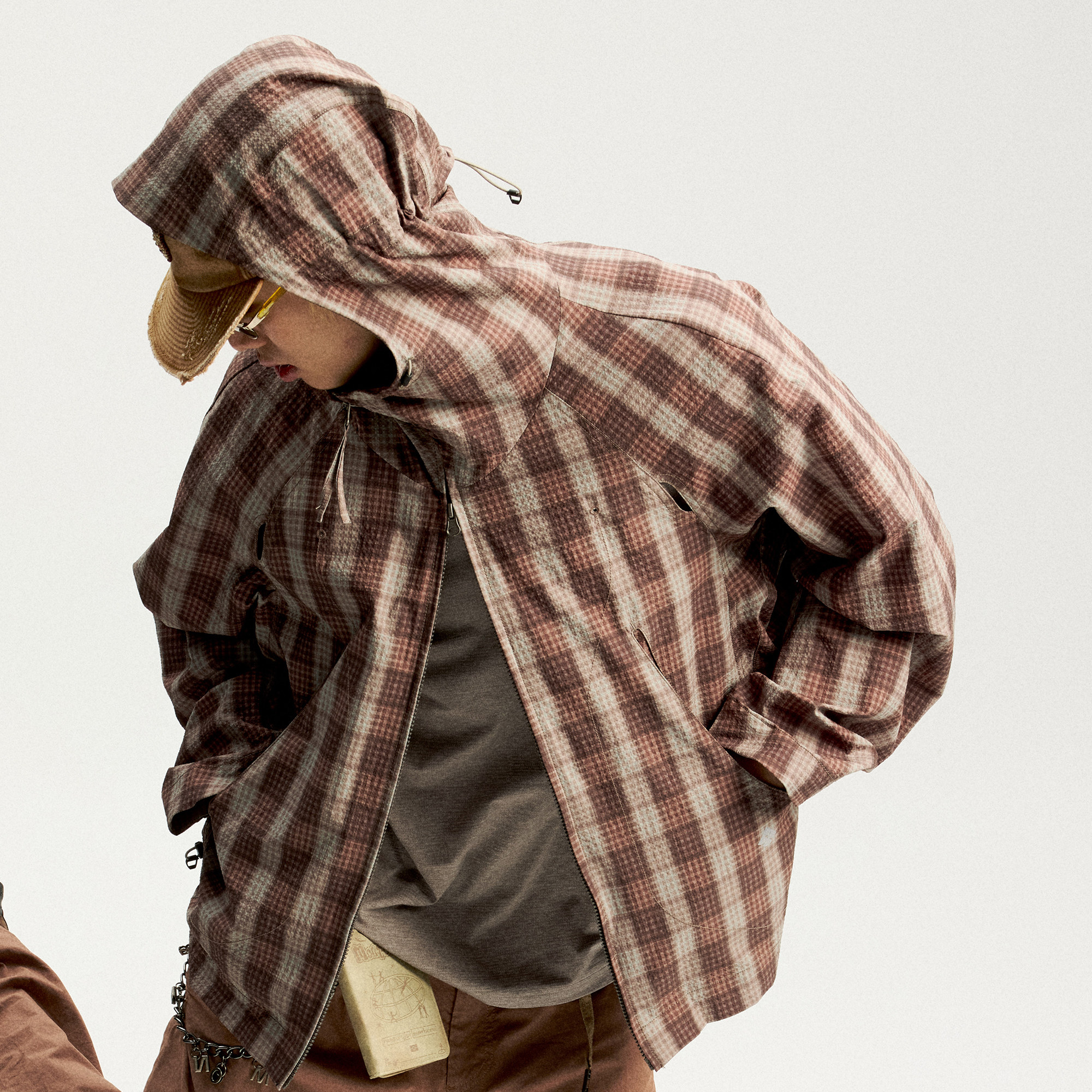 瞬时山野Monterest复古格纹肌理弧线廓形宽松休闲连帽格子外套男