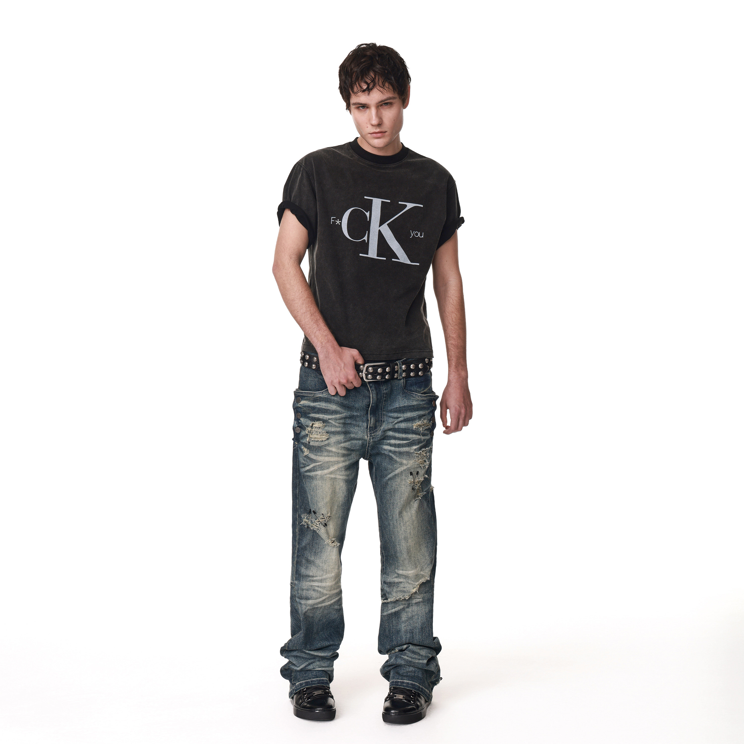 ANTIDOTE 恶搞标语印花洗水重磅T恤做旧短袖男美式复古短宽上衣