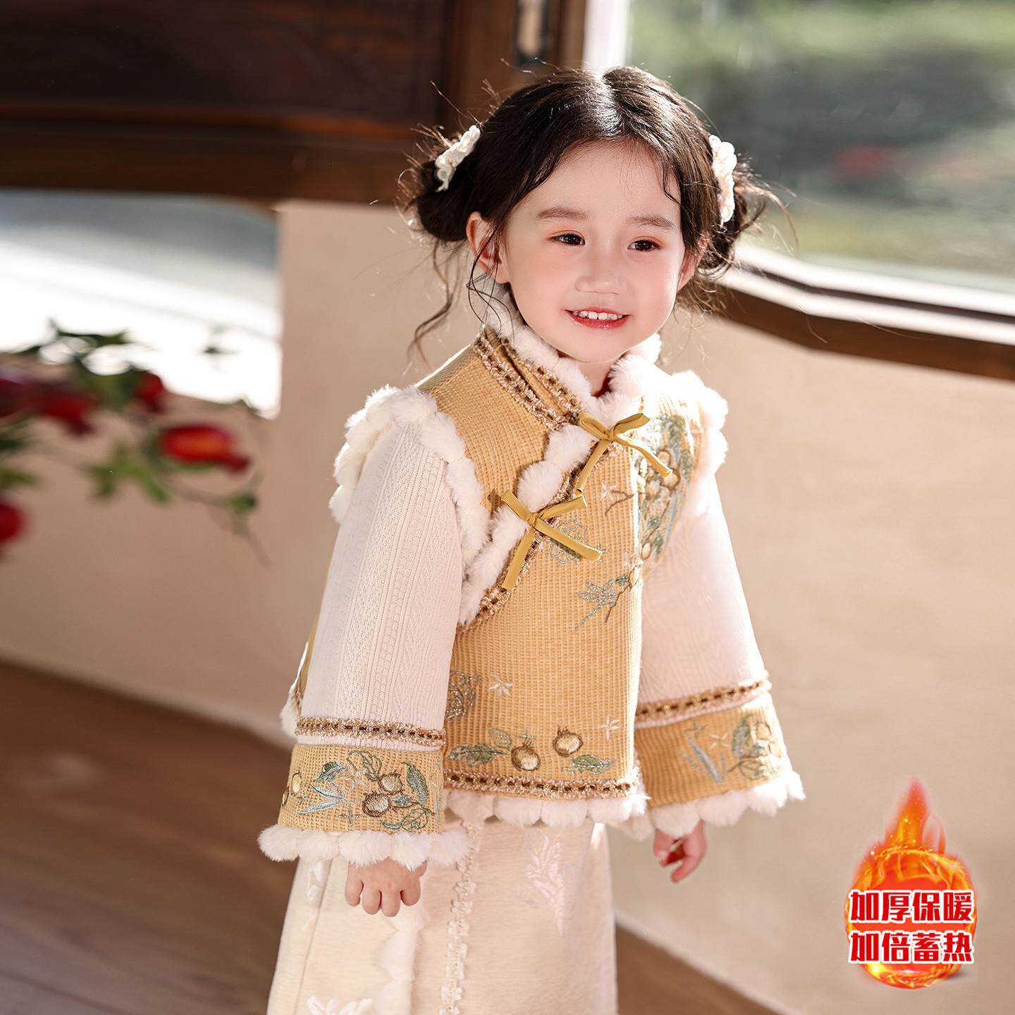 --------------------- 新中式女童汉服加绒加厚套装冬季唐装小女孩古风拜年服儿童新年装 【原售价】134元 【现售价】134元 【推荐理由】