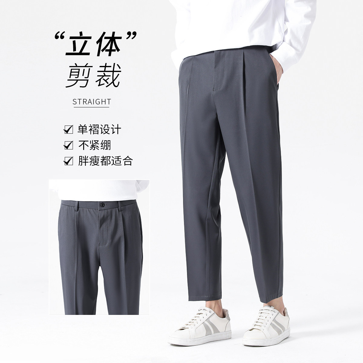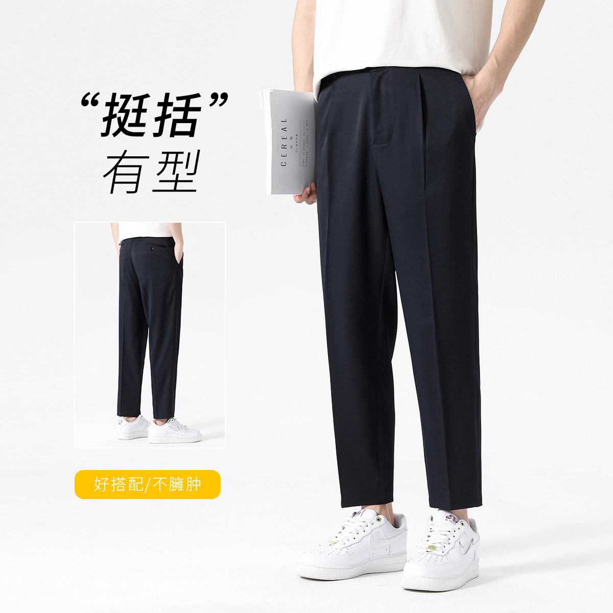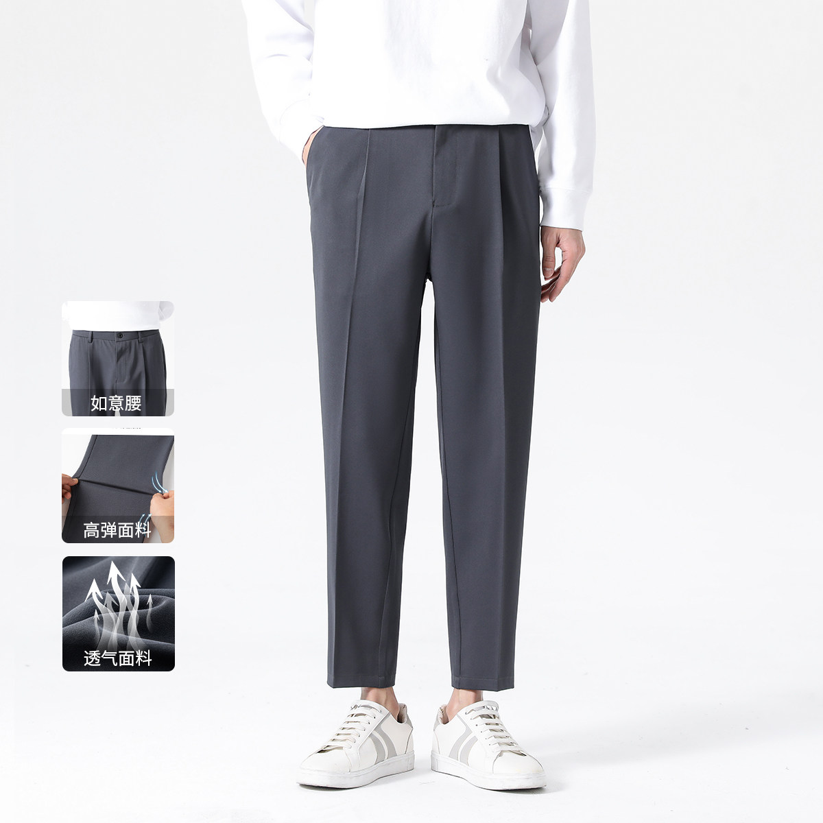 淘宝圣得西官方弹力九分锥形裤西裤2026年夏款时尚商务百搭透气休闲裤