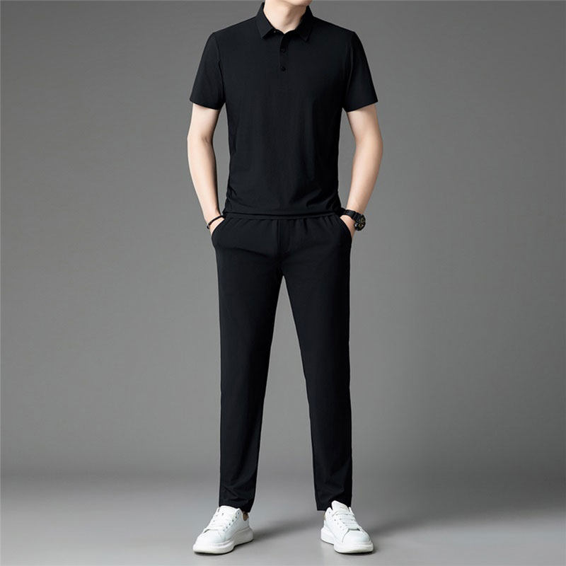 罗蒙纯棉套装男夏季大码短袖长裤子一整套薄款休闲运动服两件套