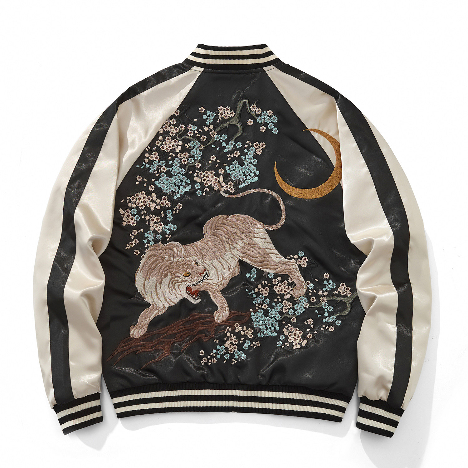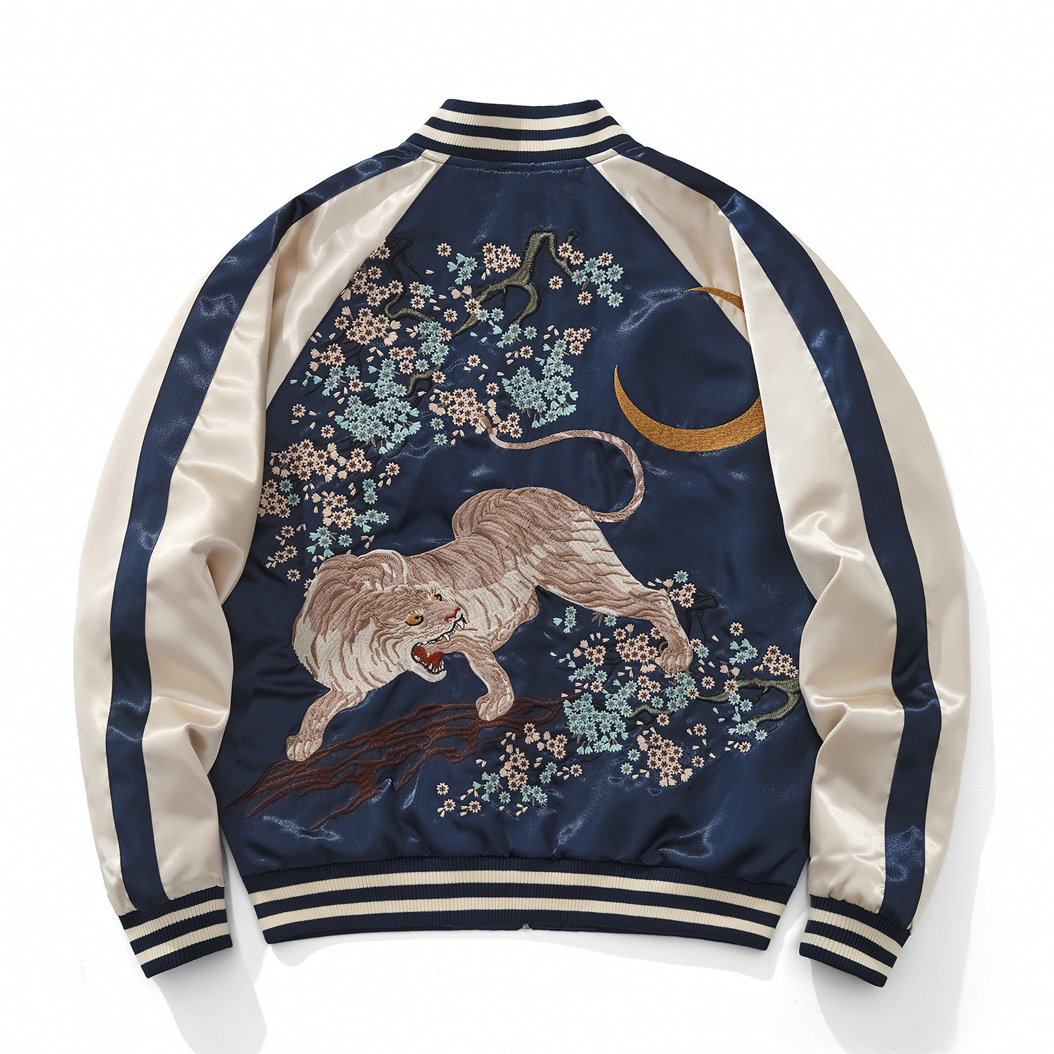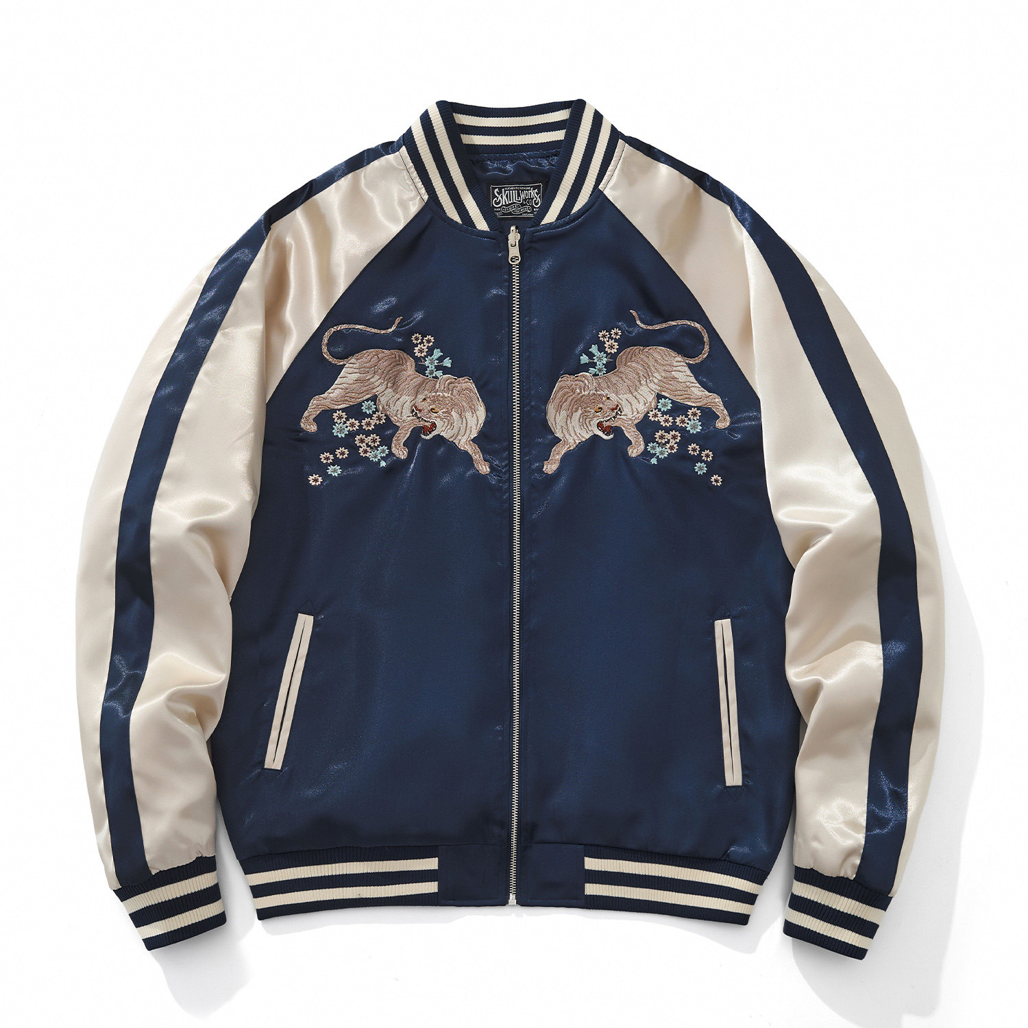 淘宝Sukajan新款横须贺老虎刺绣棒球服男生夹克外套缎面春秋上衣国潮